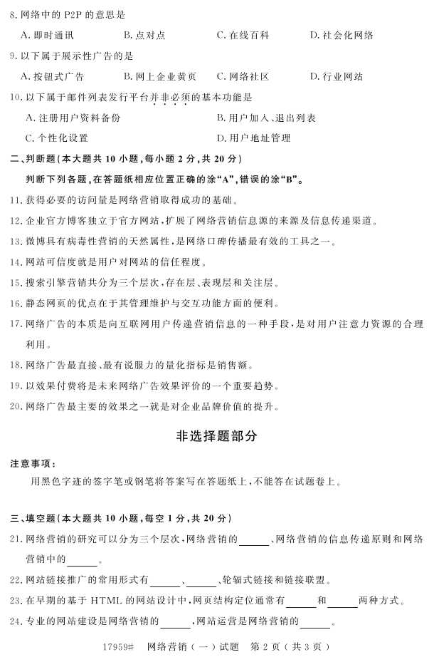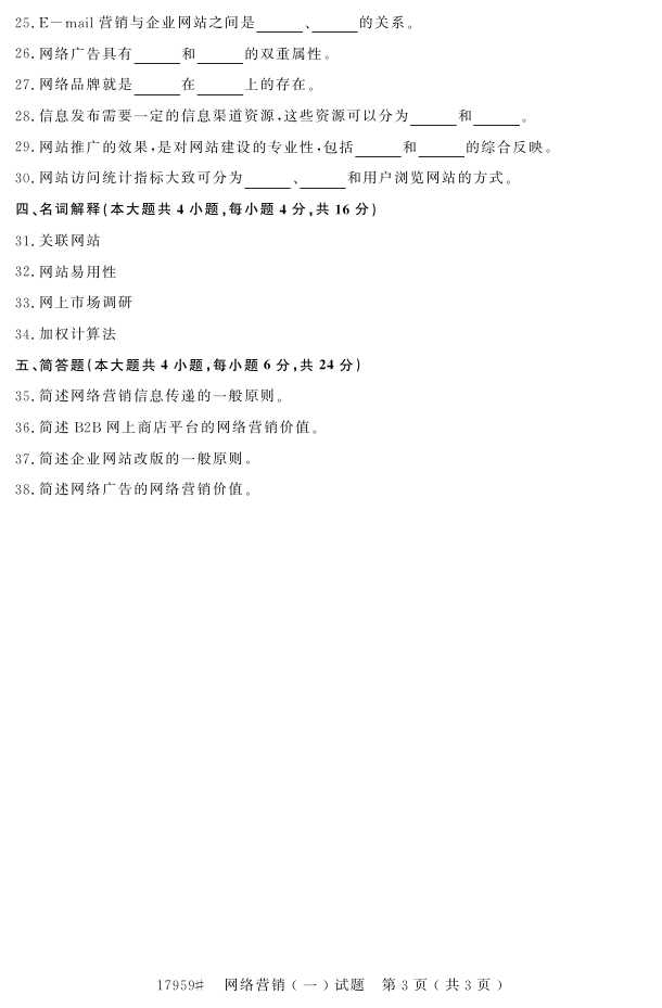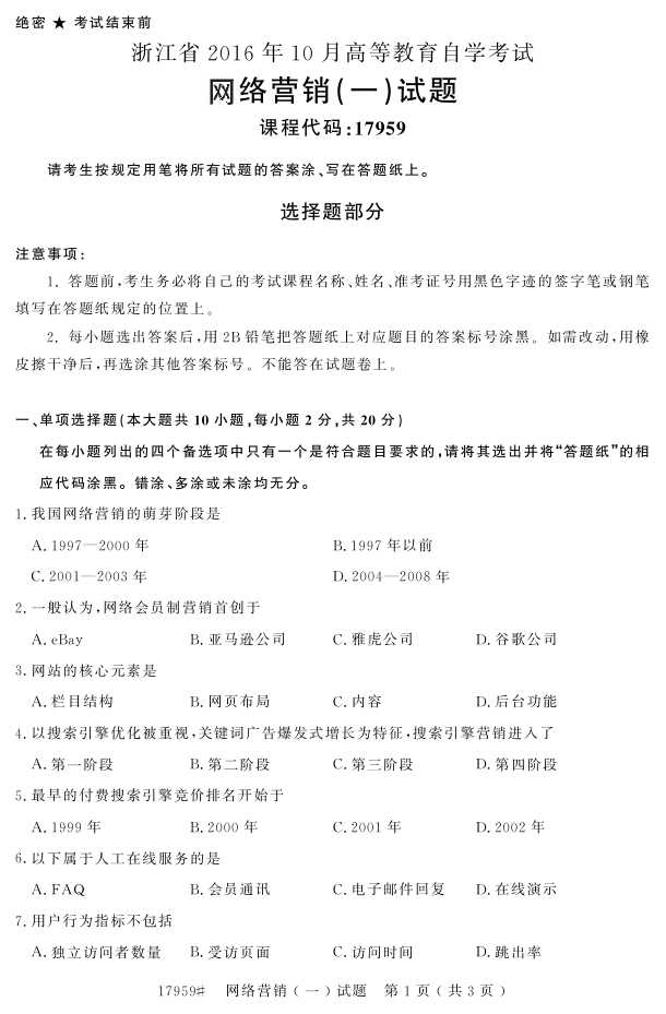 浙江省2016年10月自考17959《网络营销(一)》试题.pdf
