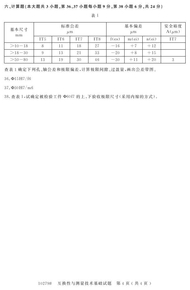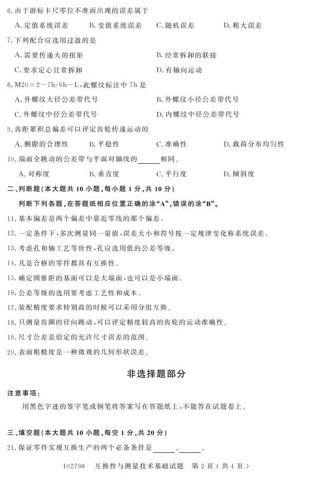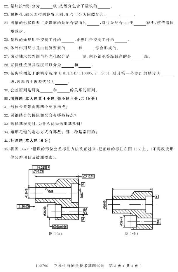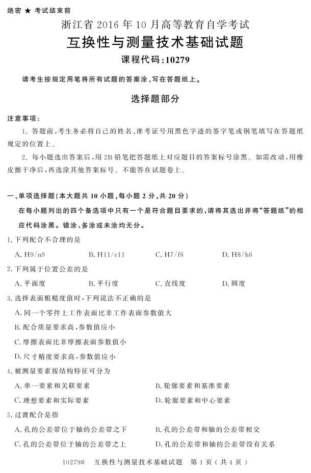 浙江省2016年10月自考10279《互换性与测量技术基础》试题.pdf