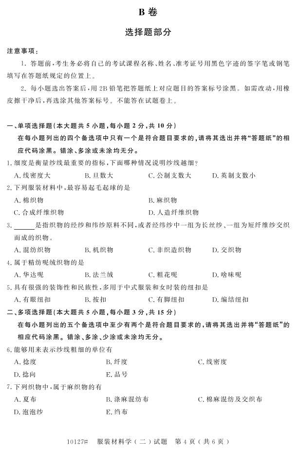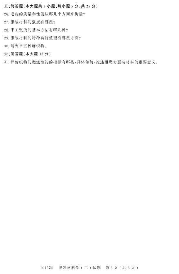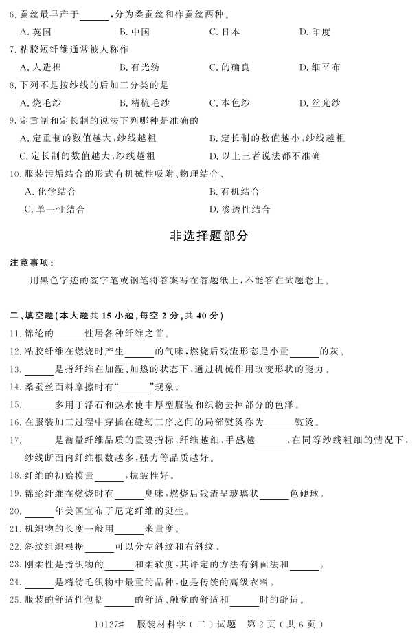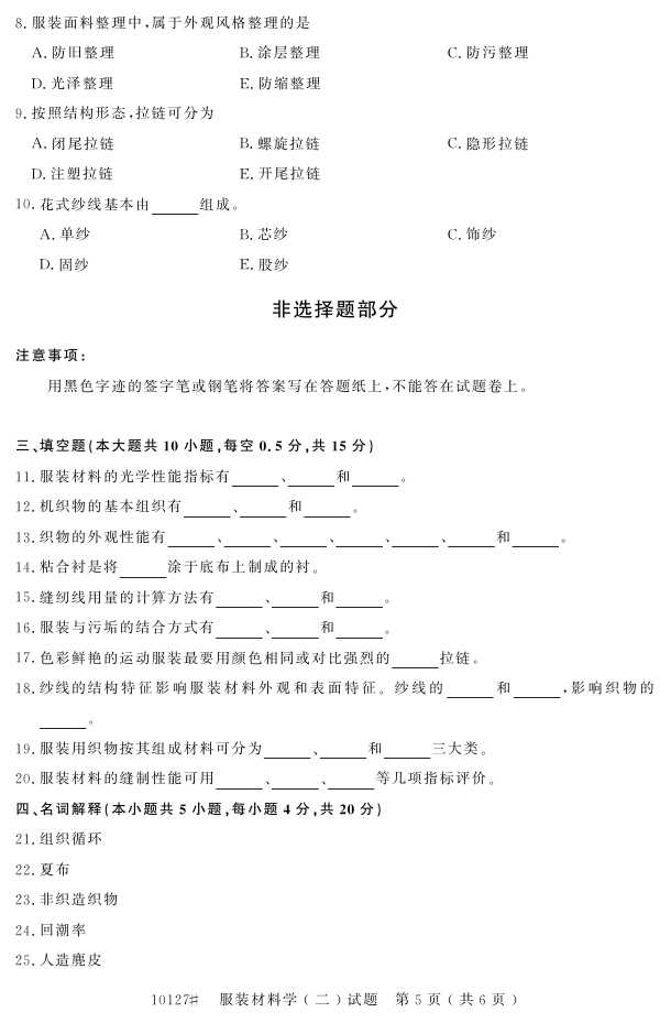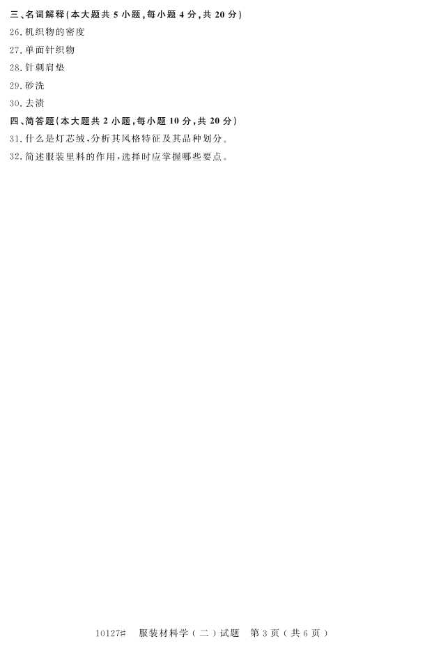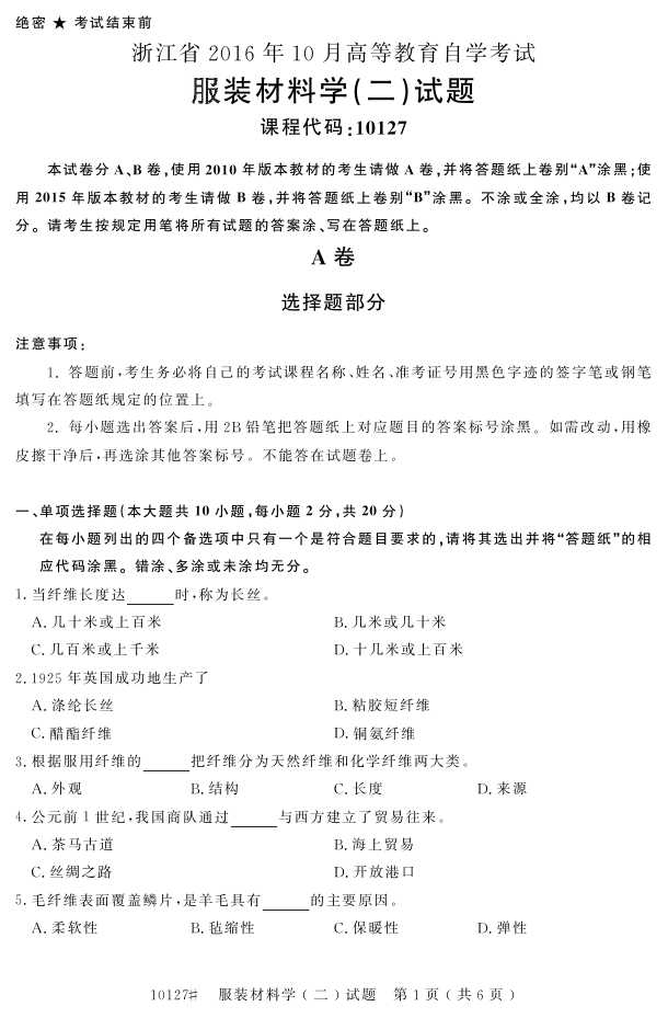 浙江省2016年10月自考10127《服装材料学(二)》试题.pdf