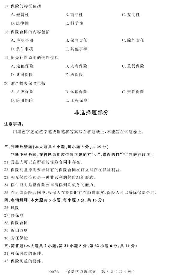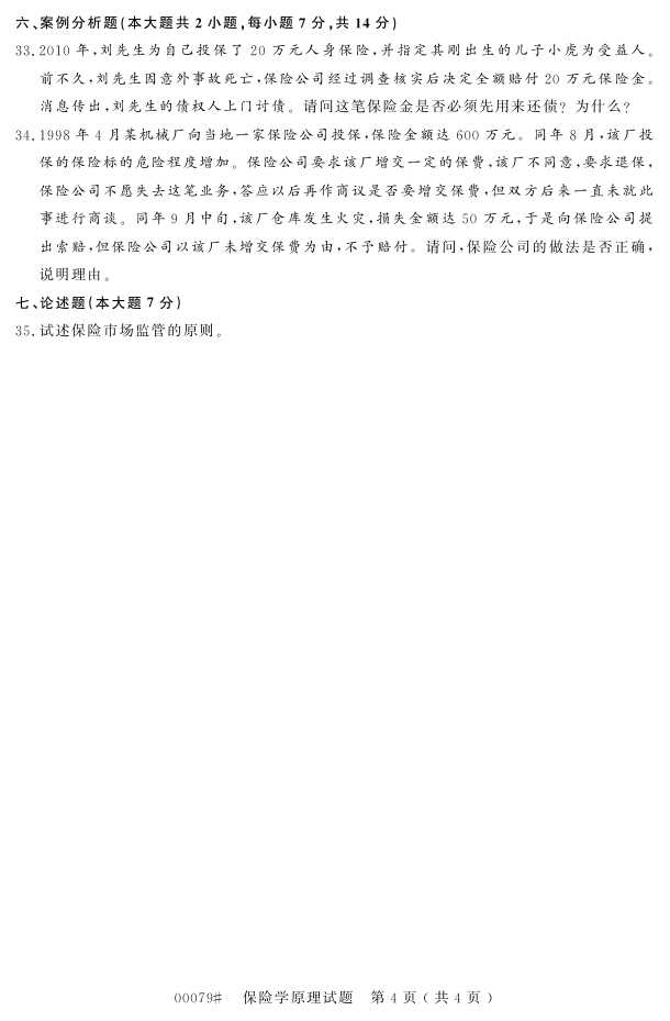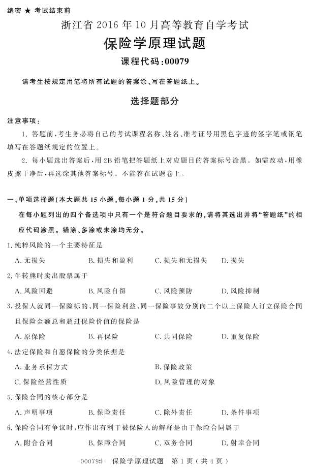 浙江省2016年10月自考00079《保险学原理》试题.pdf