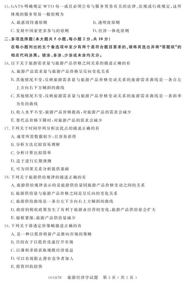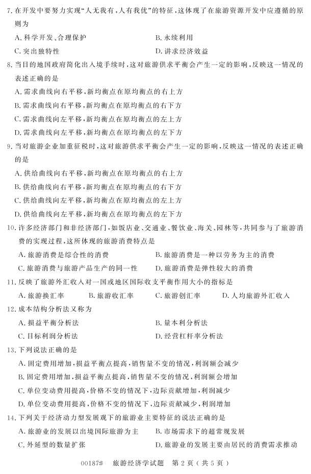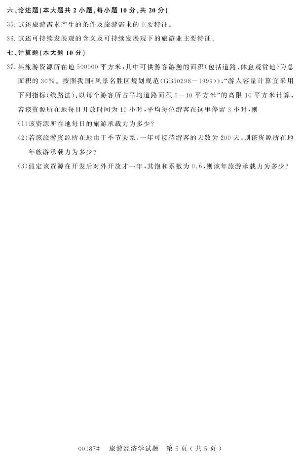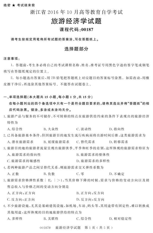浙江省2016年10月自考00187《旅游经济学》试题.pdf