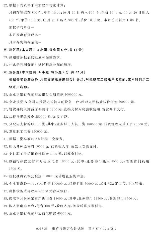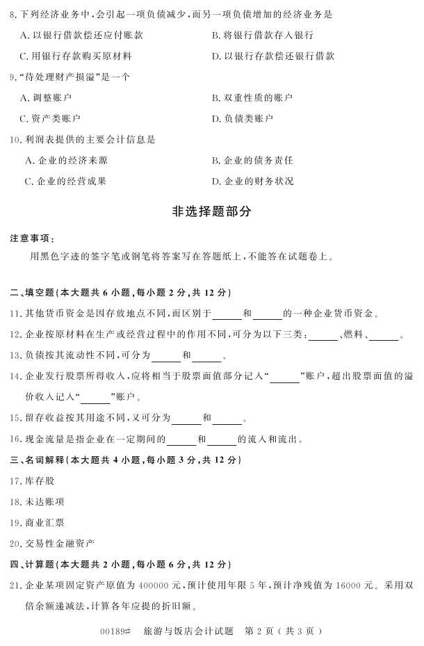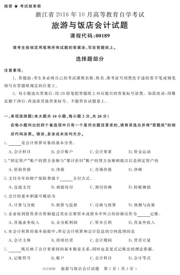 浙江省2016年10月自考00189《旅游与饭店会计》试题.pdf