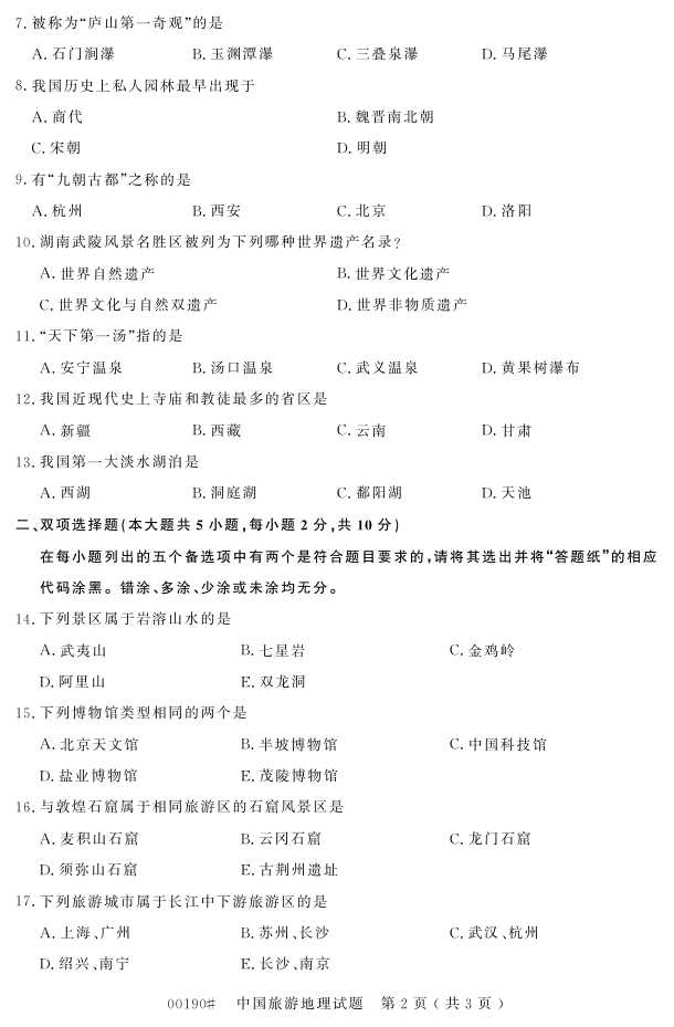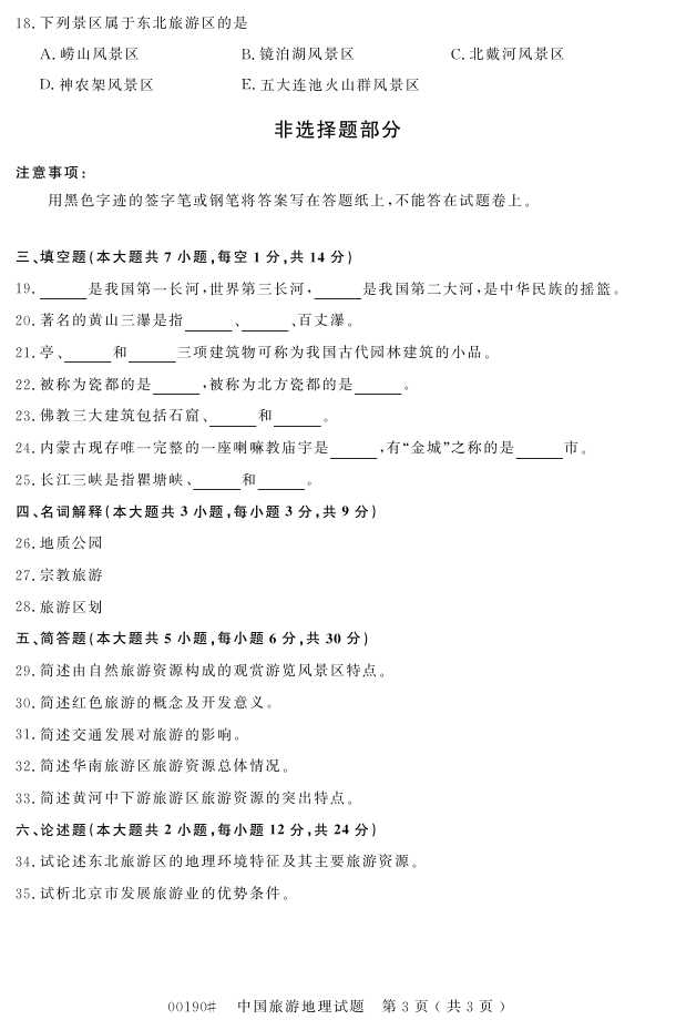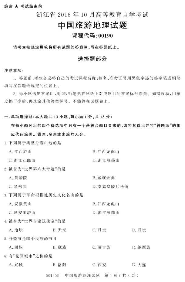 浙江省2016年10月自考00190《中国旅游地理》试题.pdf