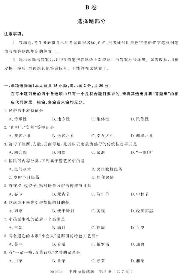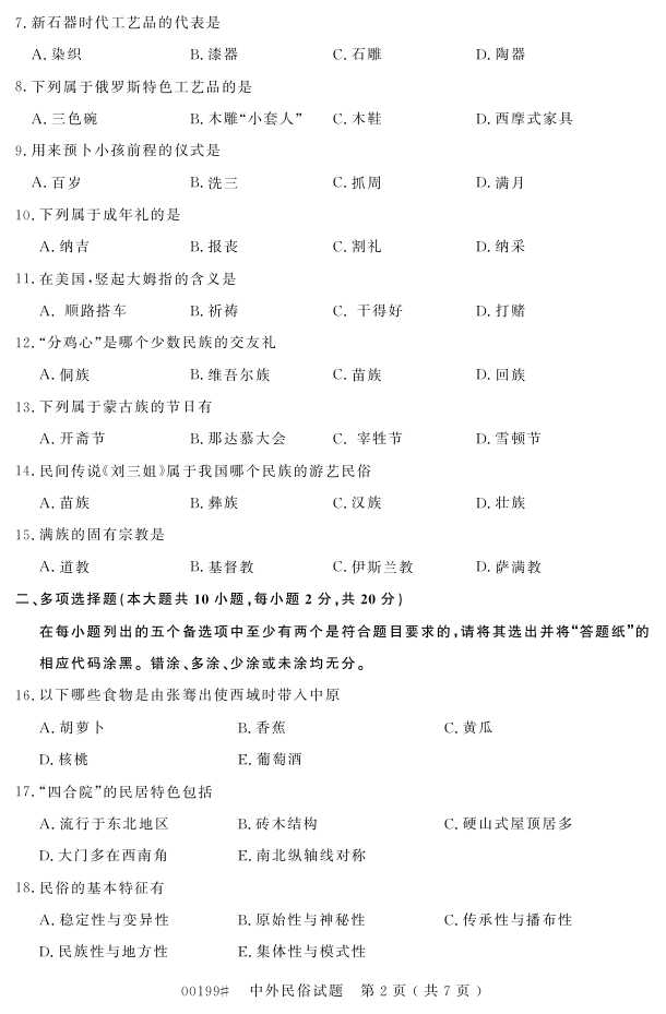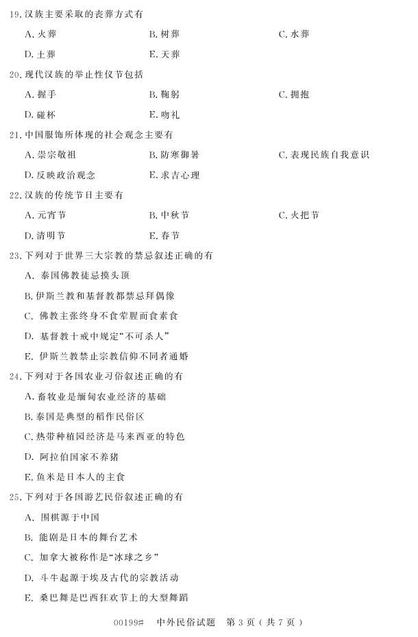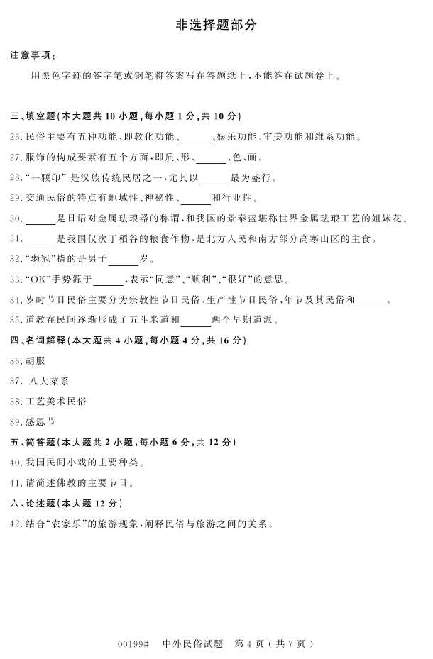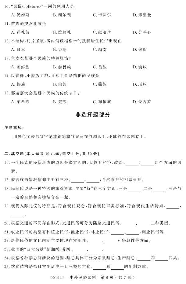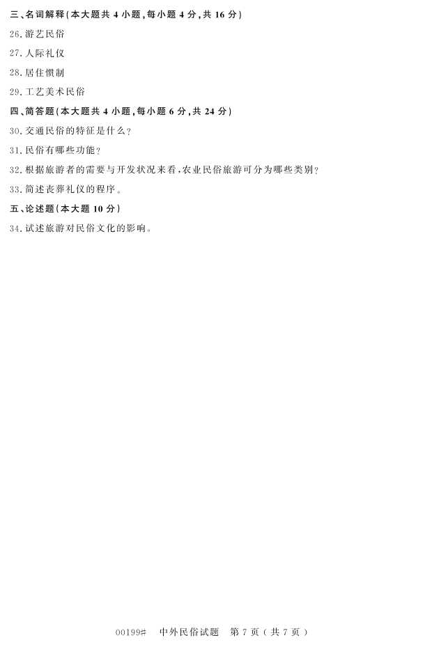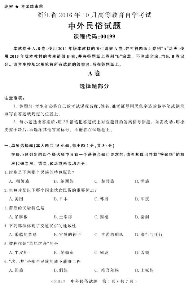 浙江省2016年10月自考00199《中外民俗》试题.pdf