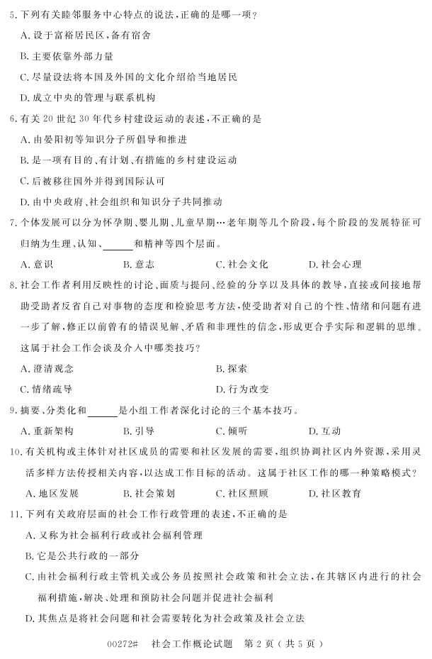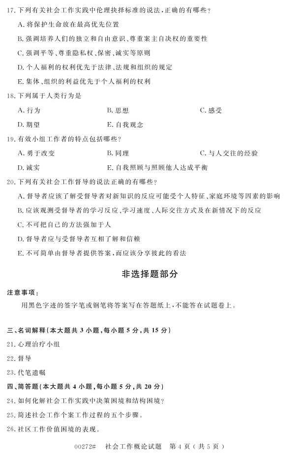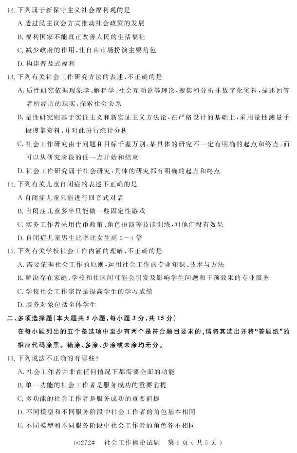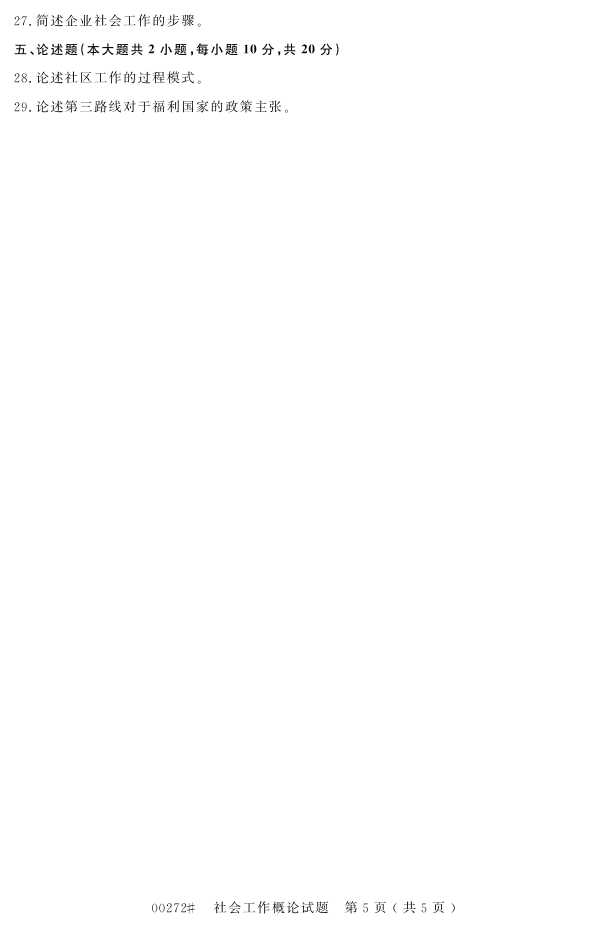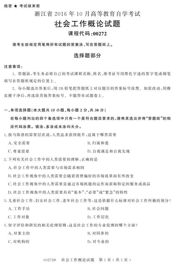 浙江省2016年10月自考00272《社会工作概论》试题.pdf