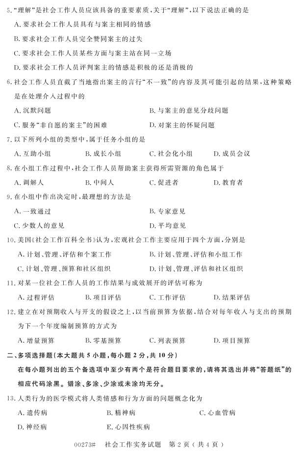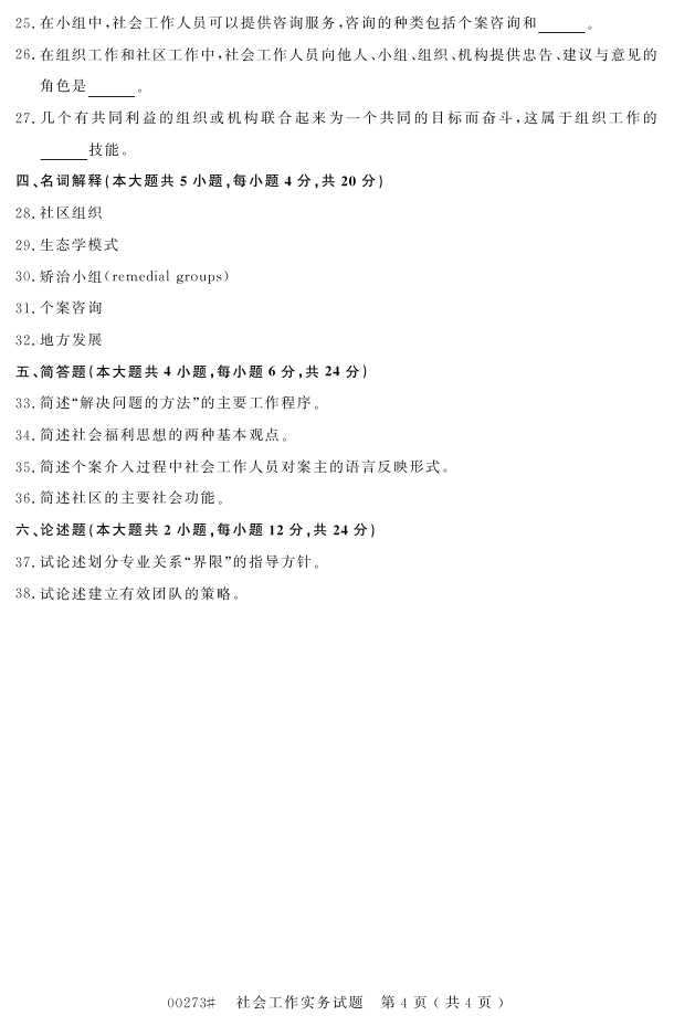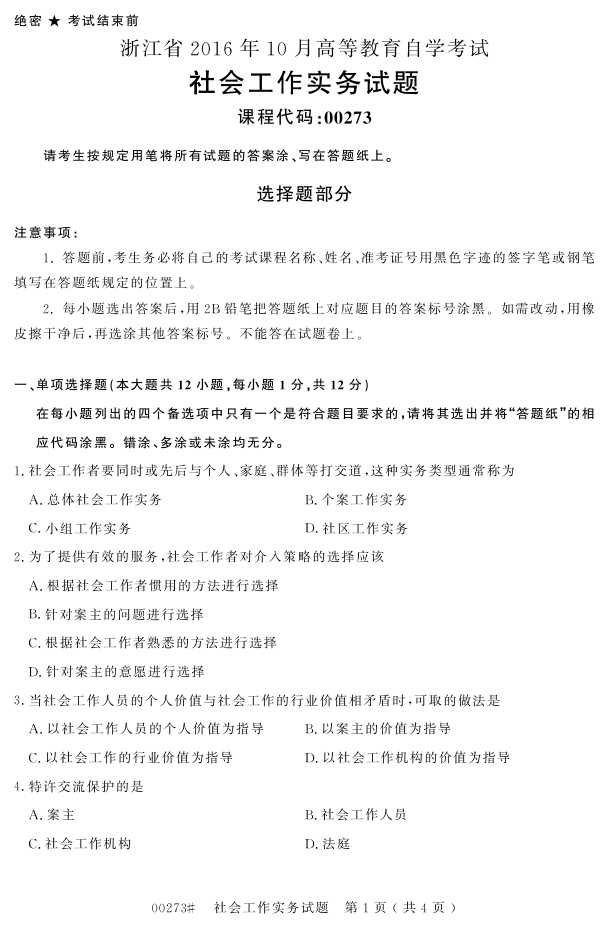 浙江省2016年10月自考00273《社会工作实务》试题.pdf