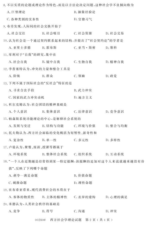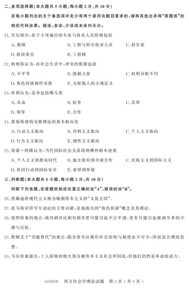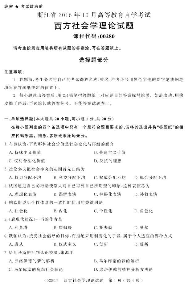 浙江省2016年10月自考00280《西方社会学理论》试题.pdf