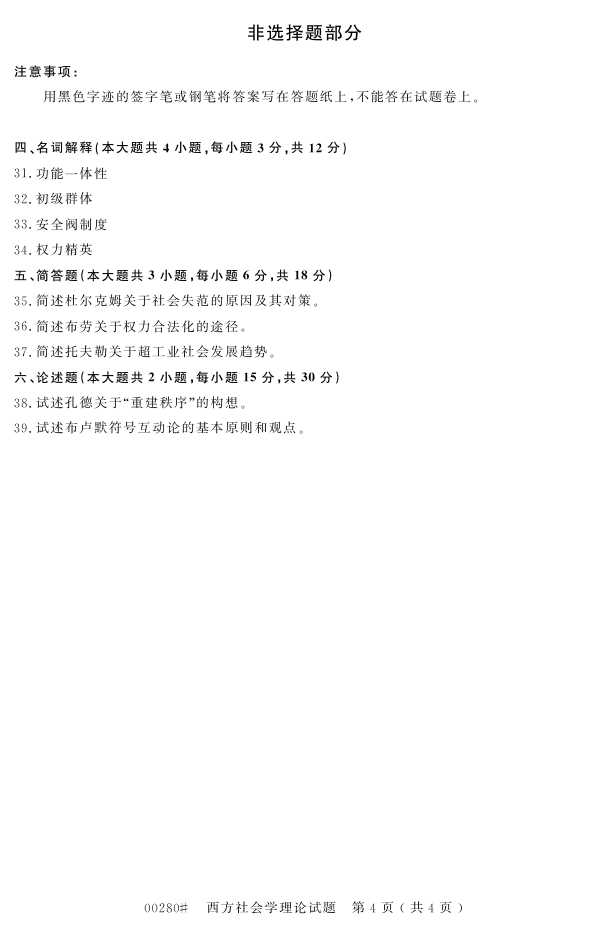 浙江省2016年10月自考00280《西方社会学理论》试题