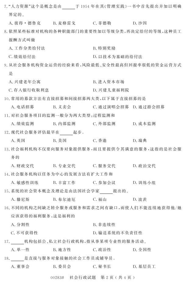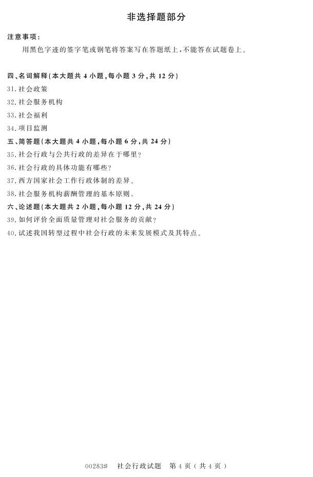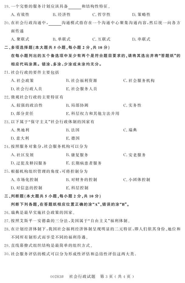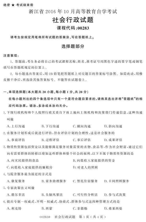 浙江省2016年10月自考00283《社会行政》试题.pdf