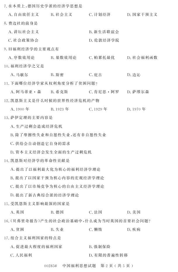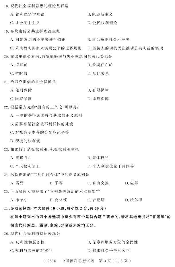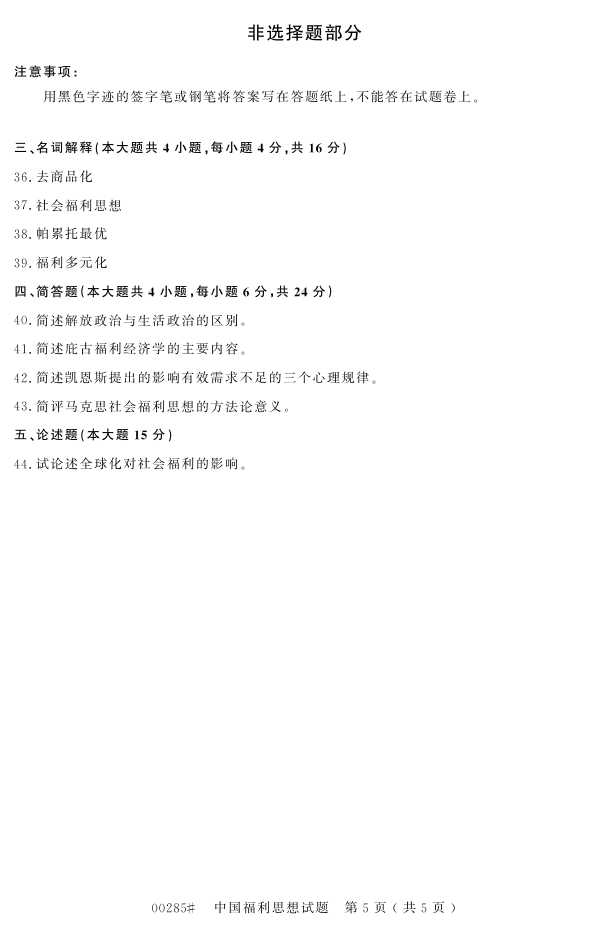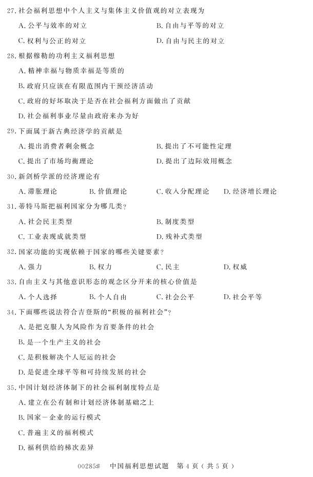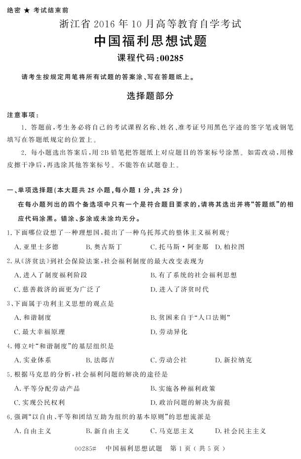 浙江省2016年10月自考00285《中国福利思想》试题.pdf