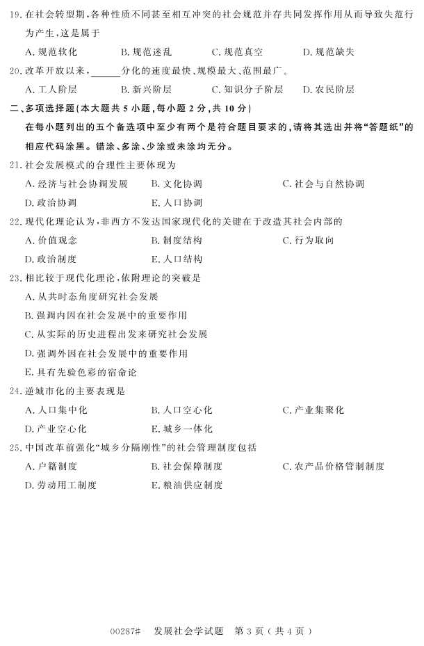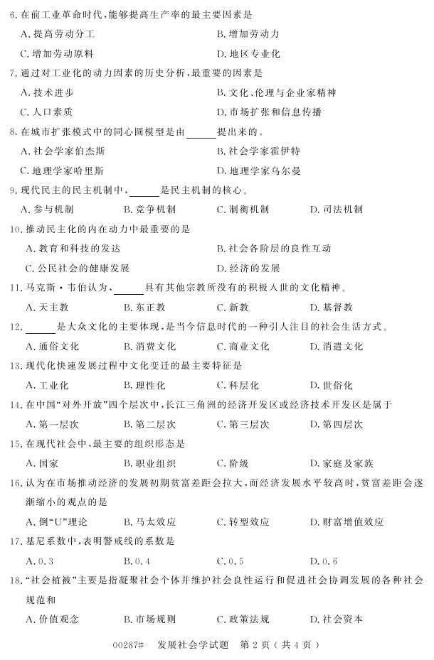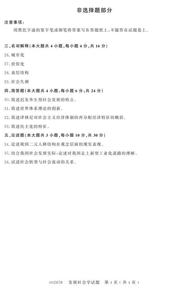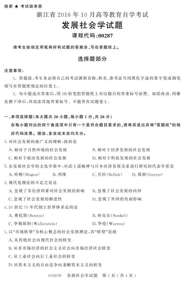 浙江省2016年10月自考00287《发展社会学》试题.pdf