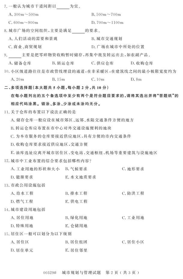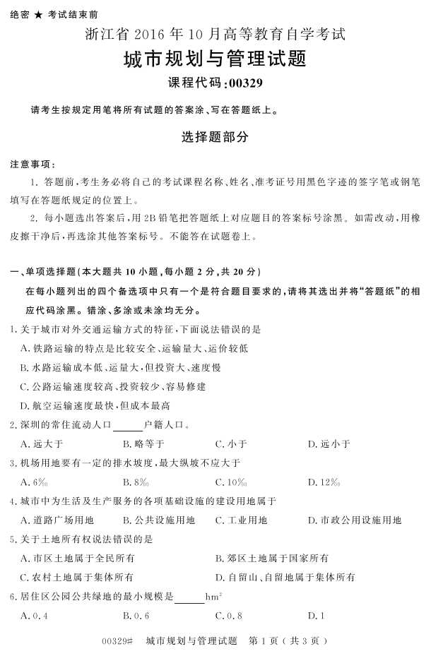 浙江省2016年10月自考00329《城市规划与管理》试题.pdf