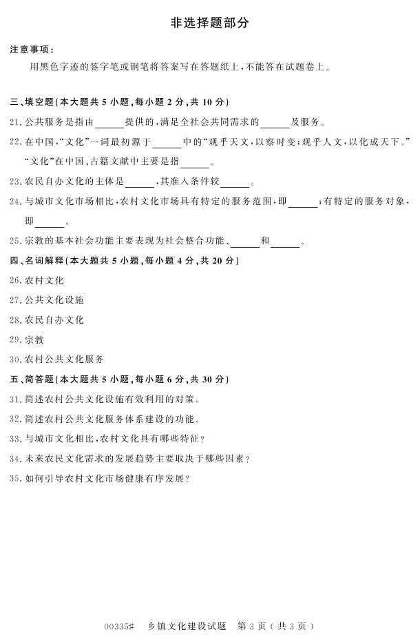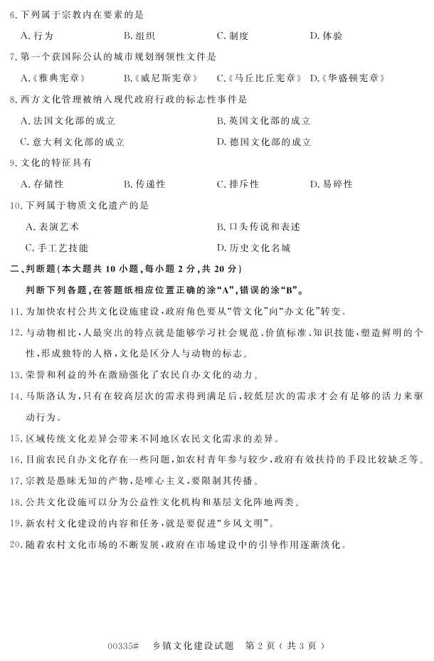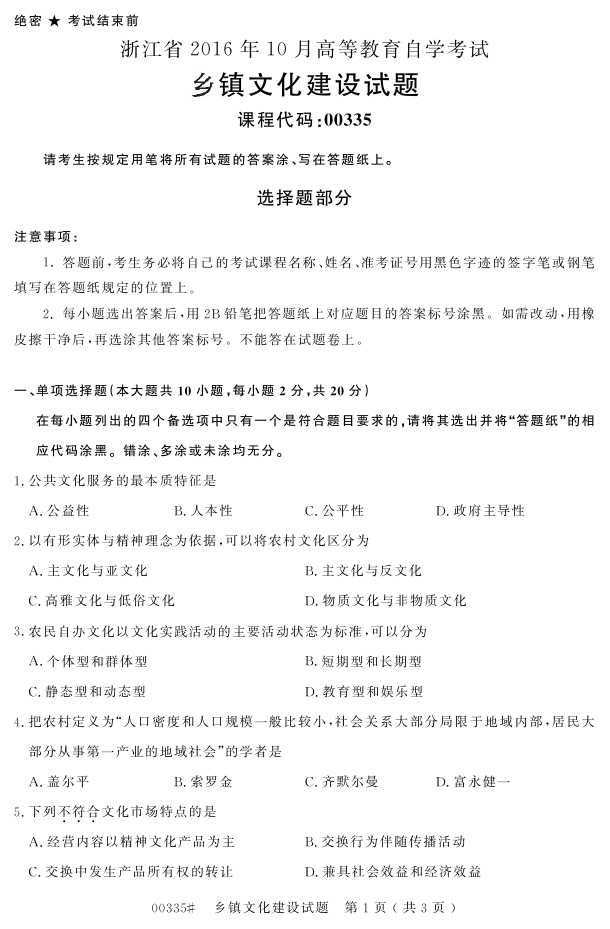 浙江省2016年10月自考00335《乡镇文化建设》试题.pdf