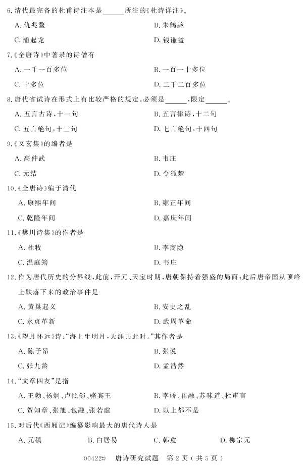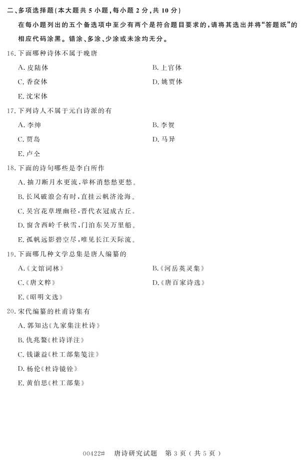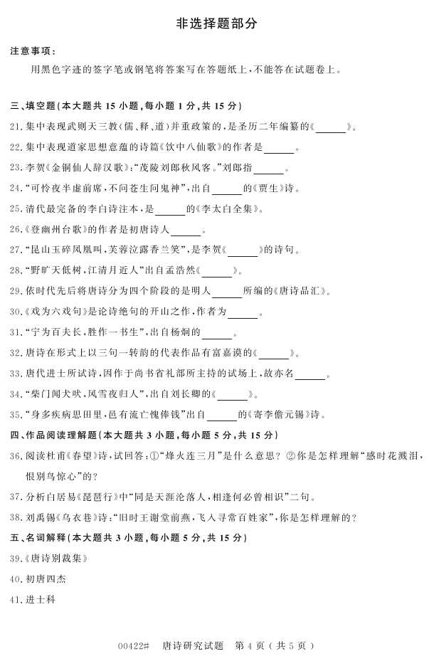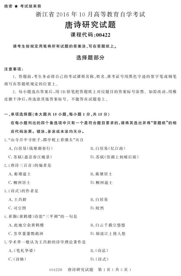 浙江省2016年10月自考00422《唐诗研究》试题.pdf