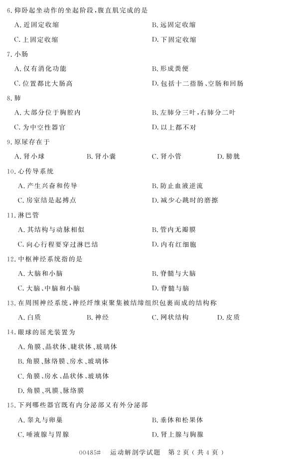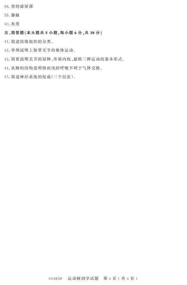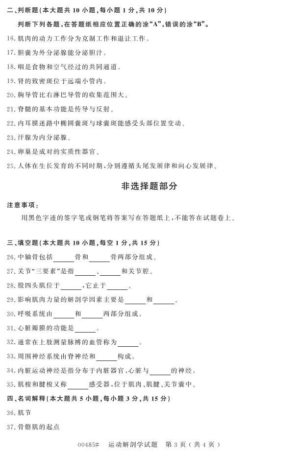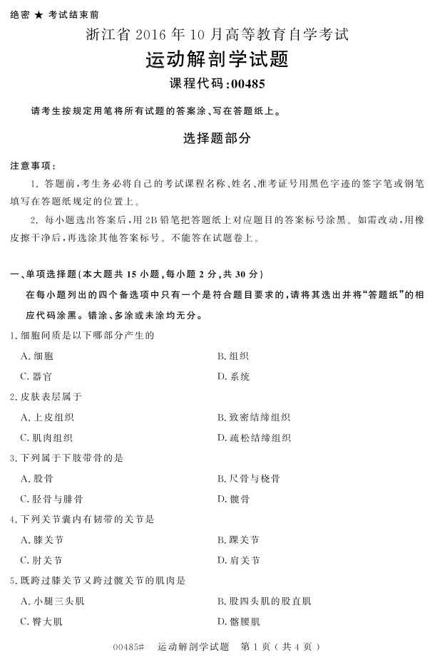 浙江省2016年10月自考00485《运动解剖学》试题.pdf