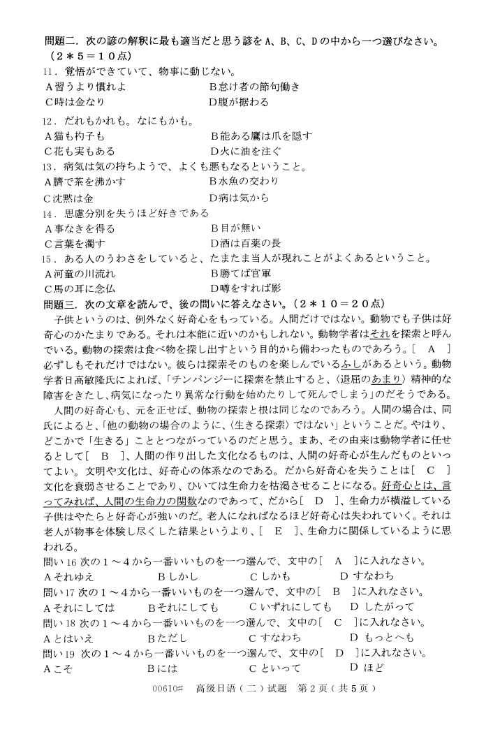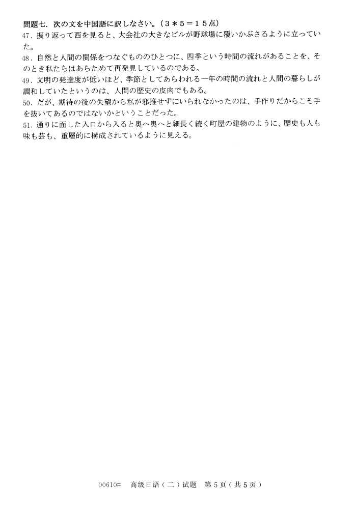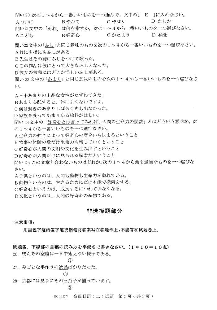 浙江省2016年10月自考00610《高级日语(二)》试题.pdf