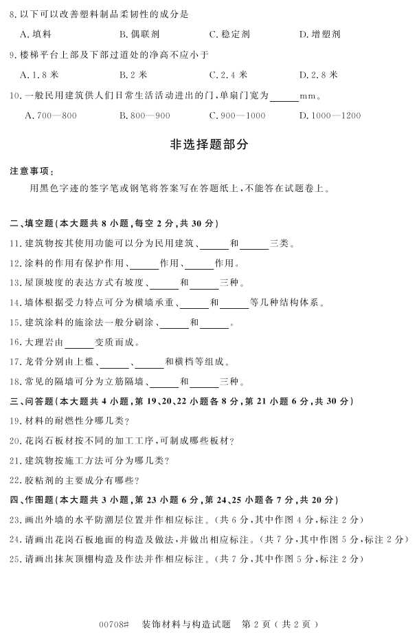 浙江省2016年10月自考00708《装饰材料与构造》试题