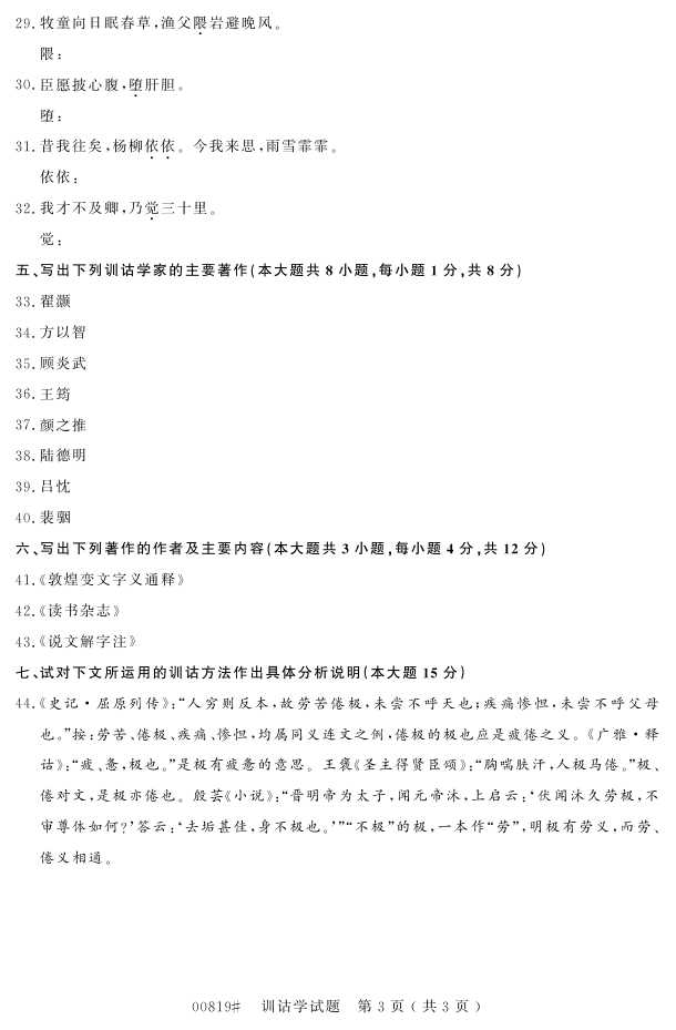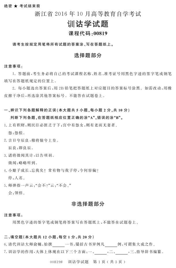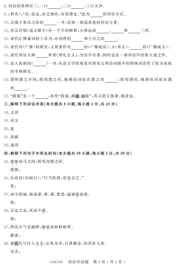 浙江省2016年10月自考00819《训诂学》试题.pdf