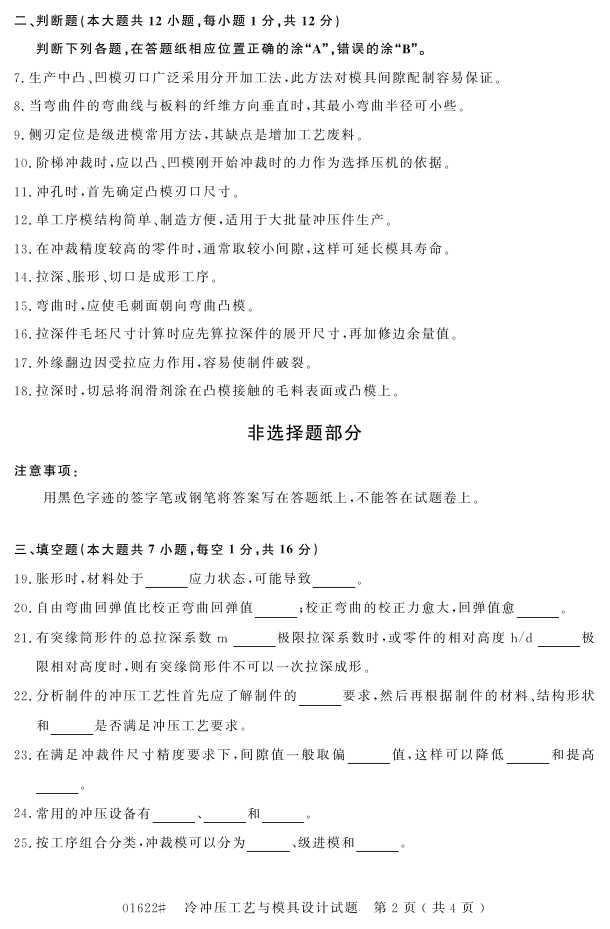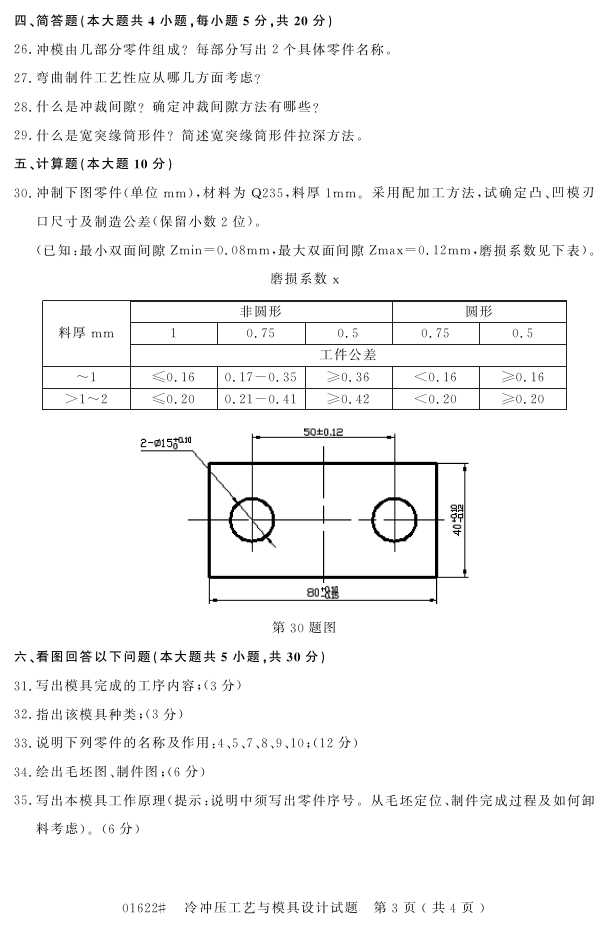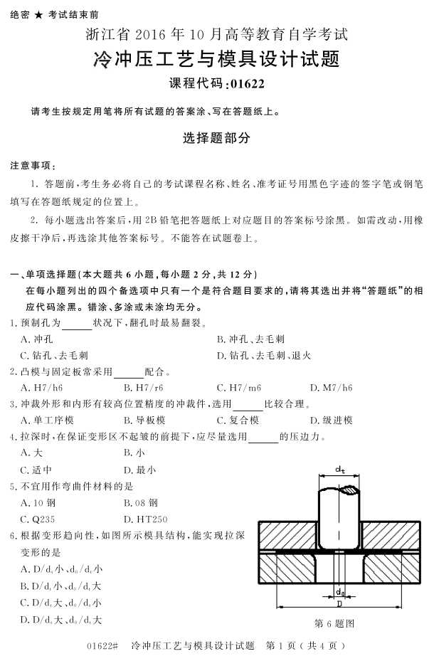 浙江省2016年10月自考01622《冷冲压工艺与模具设计》试题.pdf