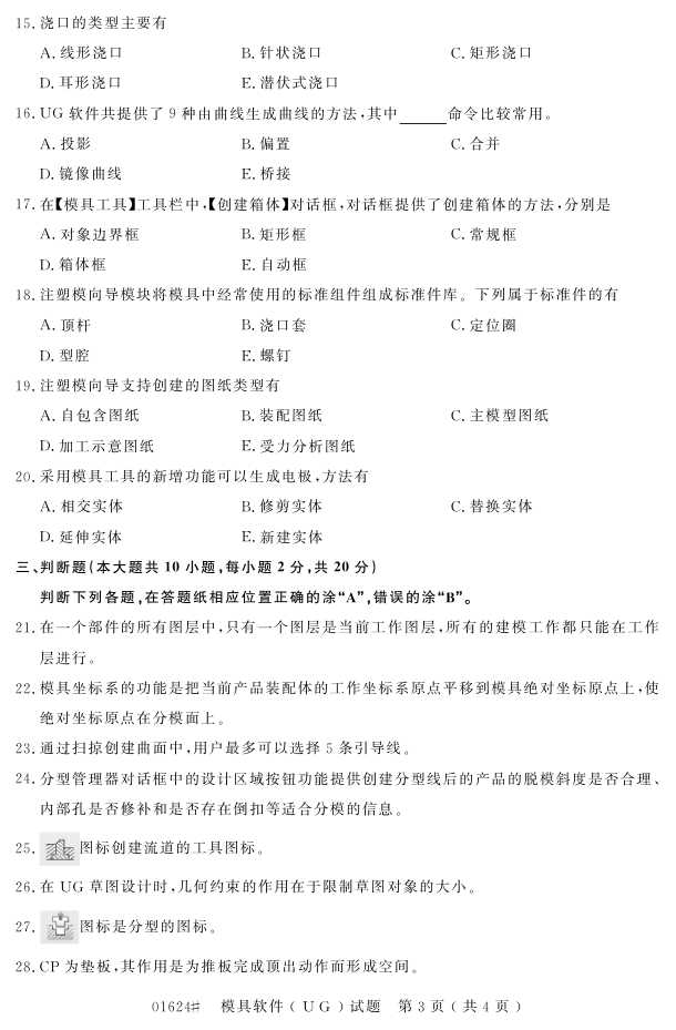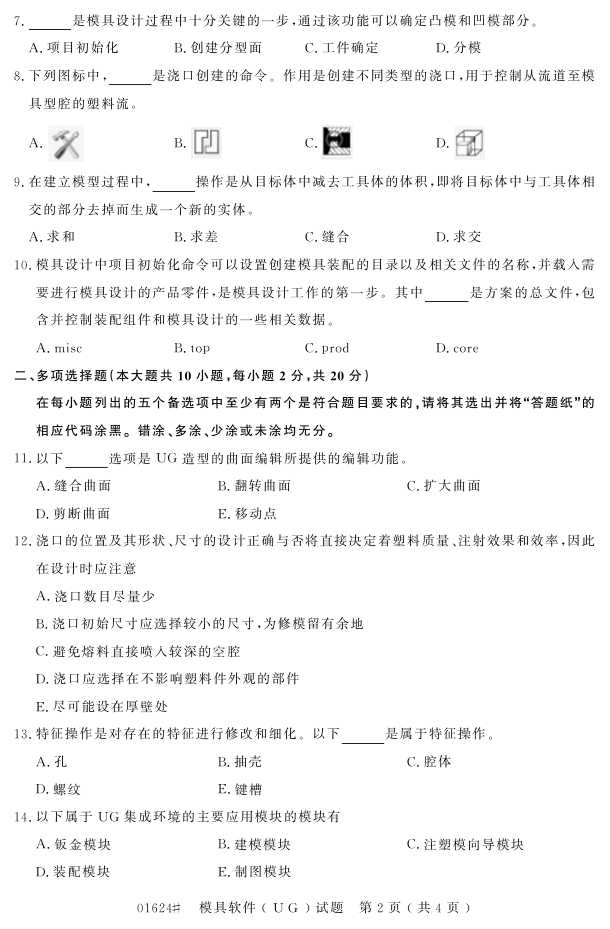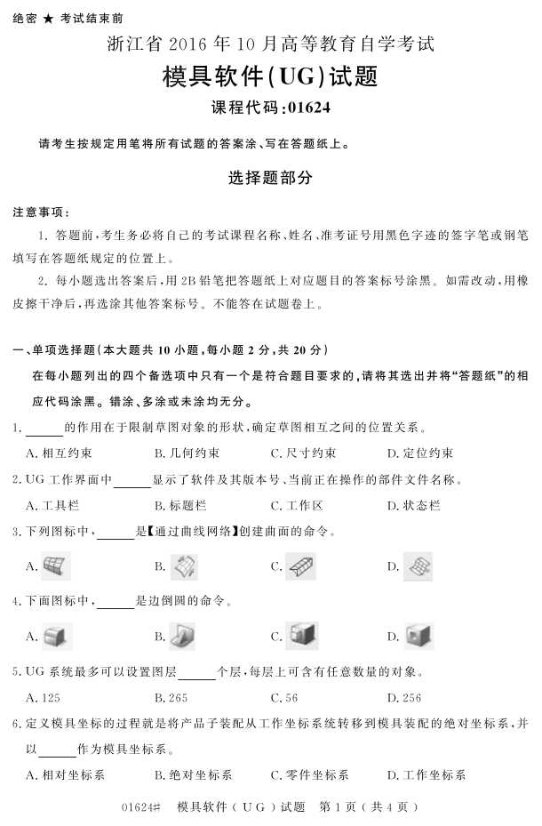 浙江省2016年10月自考01624《模具软件(UG)》试题.pdf