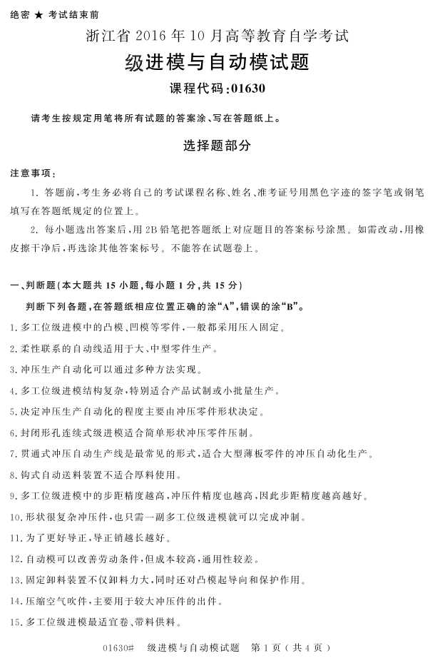 浙江省2016年10月自考01630《级进模与自动模》试题.pdf