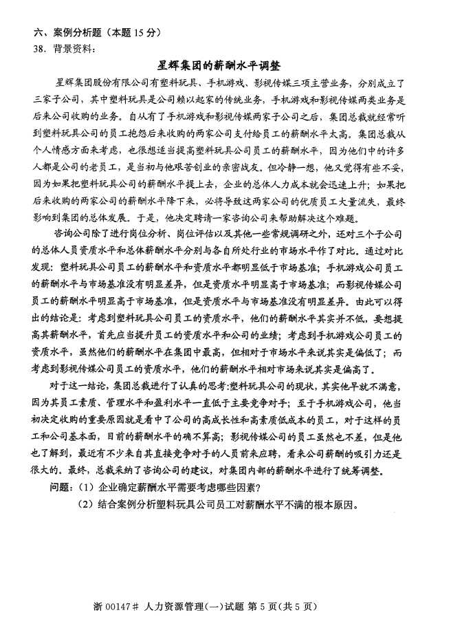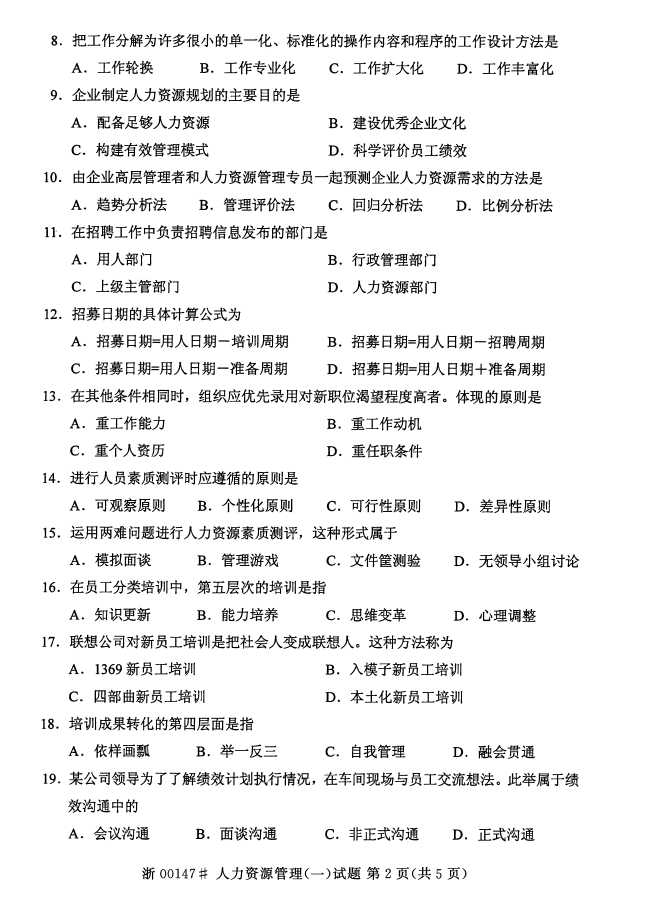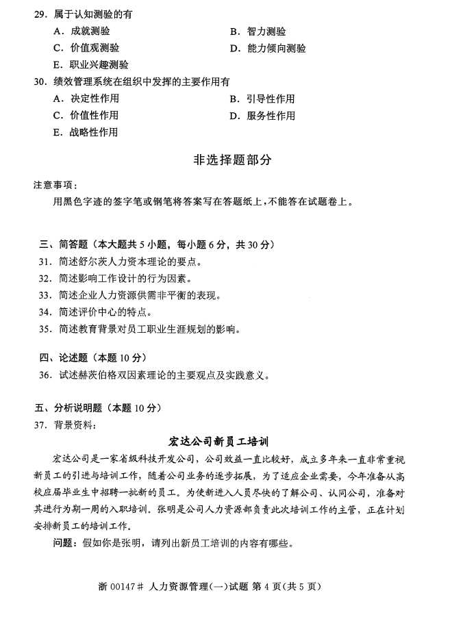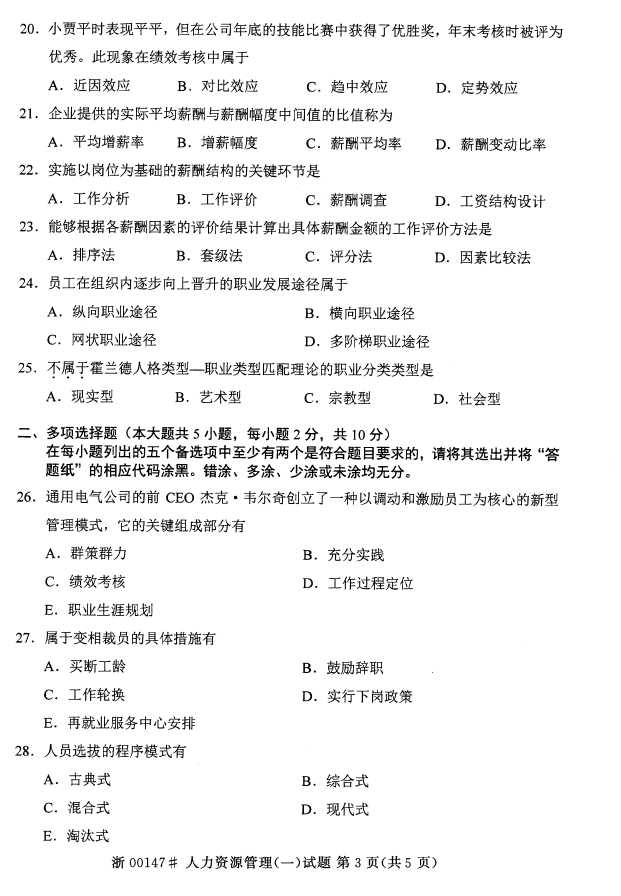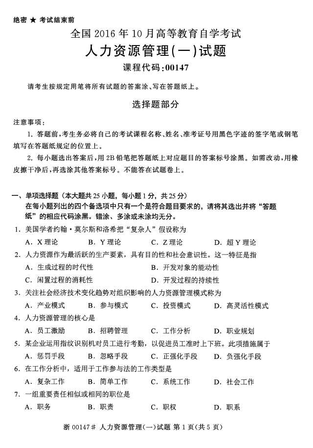 全国2016年10月自考00147《人力资源管理(一)》试题.pdf