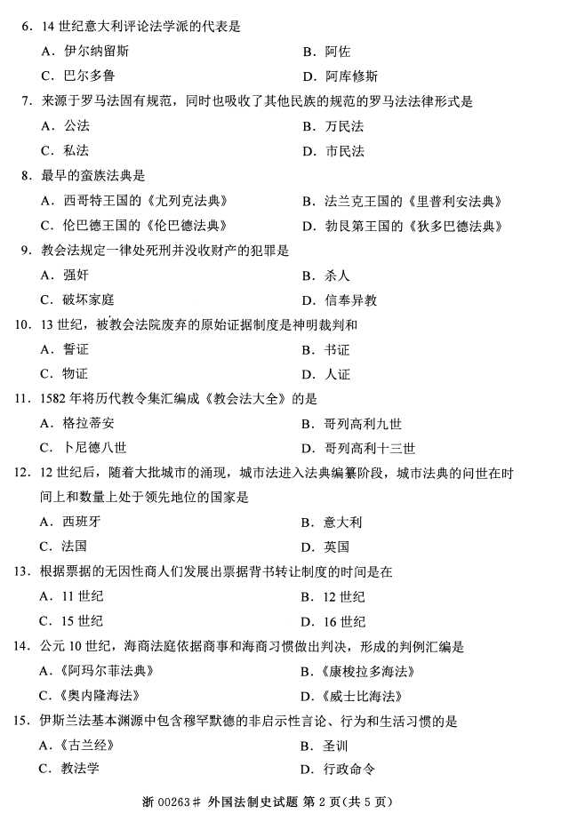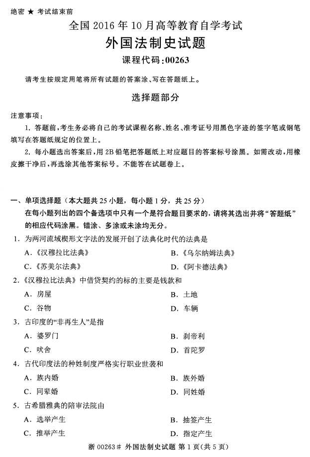 全国2016年10月自考00263《外国法制史》试题.pdf