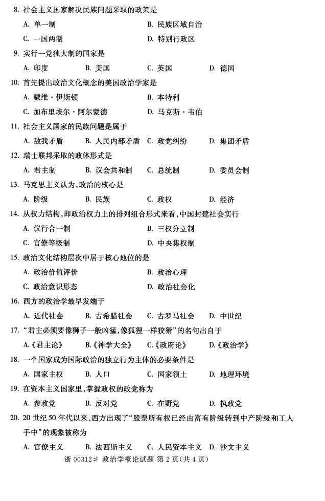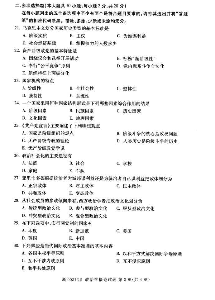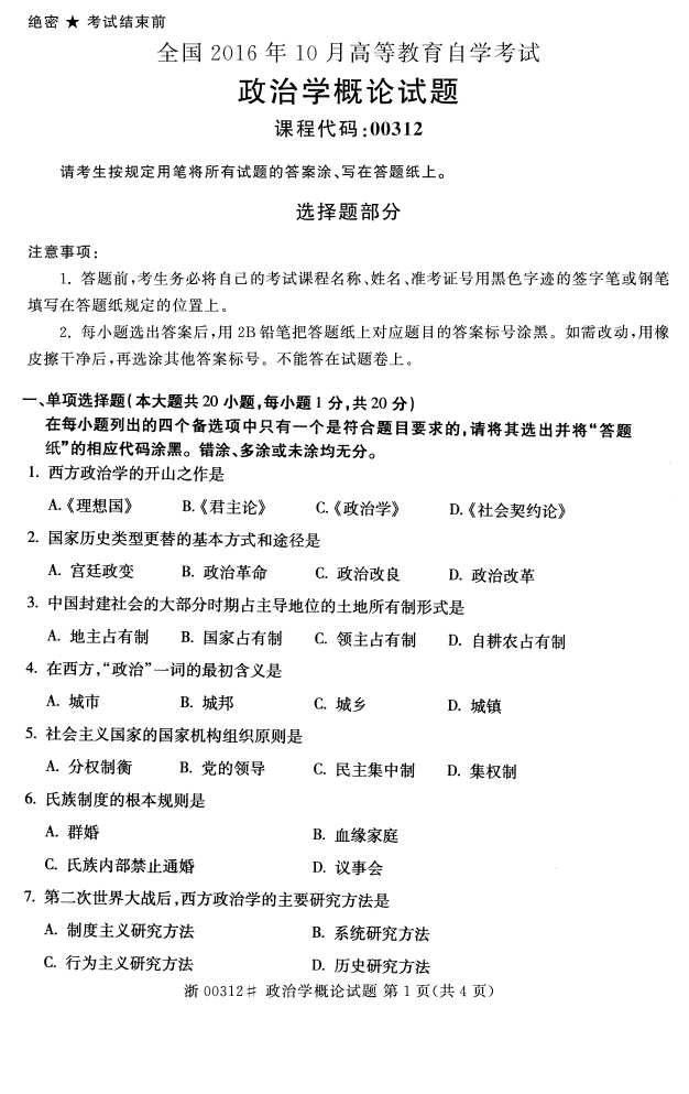 全国2016年10月自考00312《政治学概论》试题.pdf