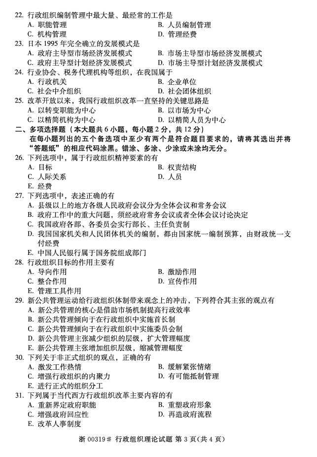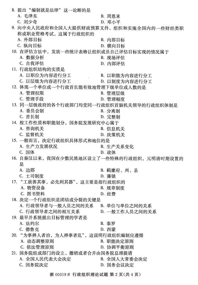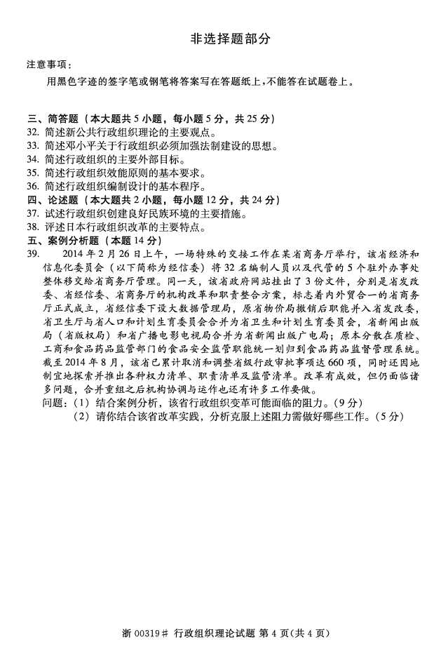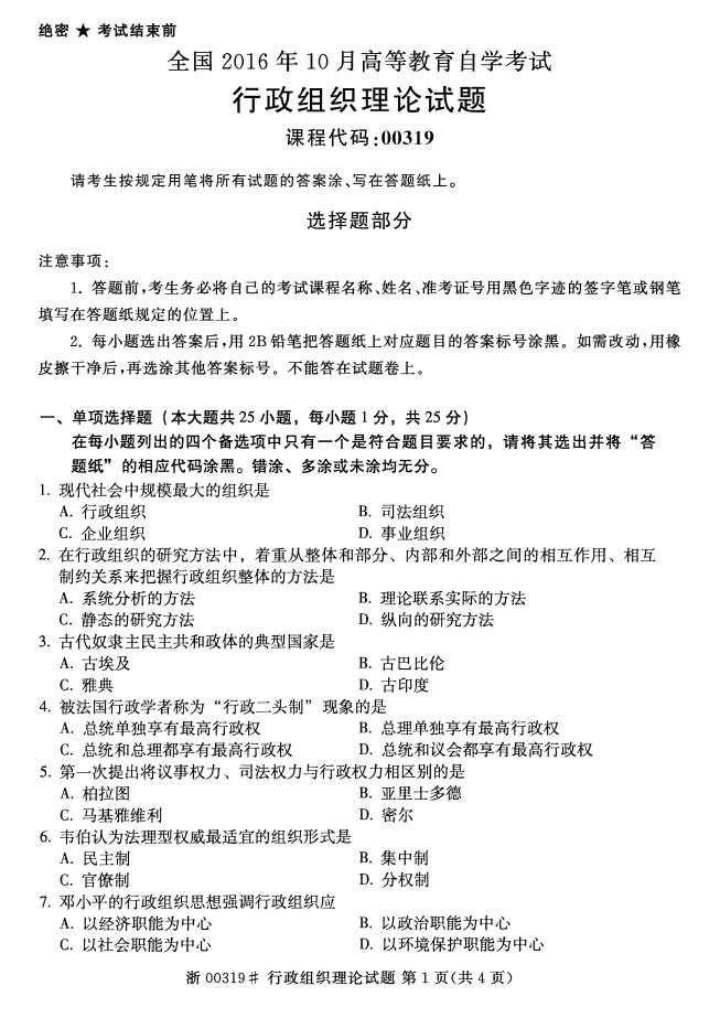 全国2016年10月自考00319《行政组织理论》试题.pdf