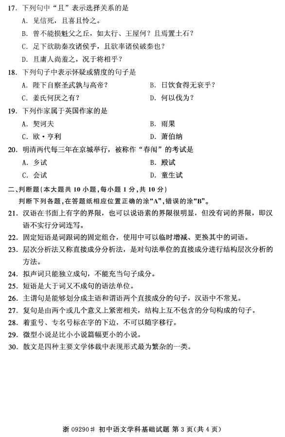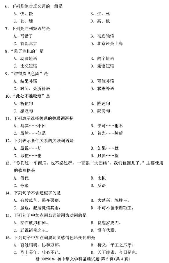 全国2016年4月09290《初中语文学科基础》试题.pdf
