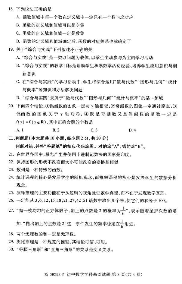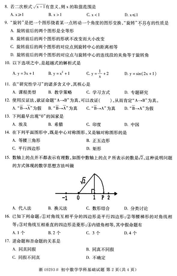 全国2016年4月09293《初中数学学科基础》试题.pdf