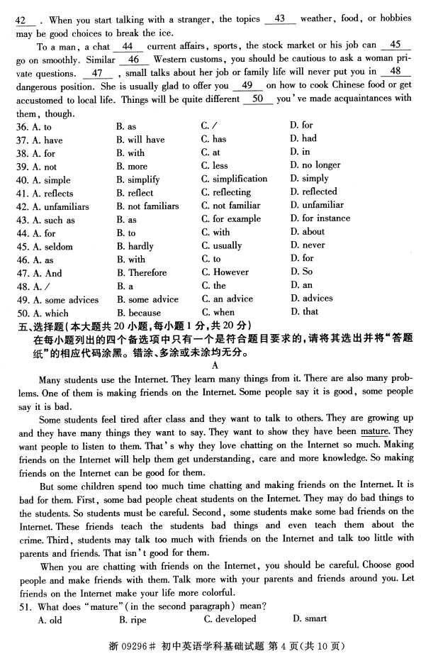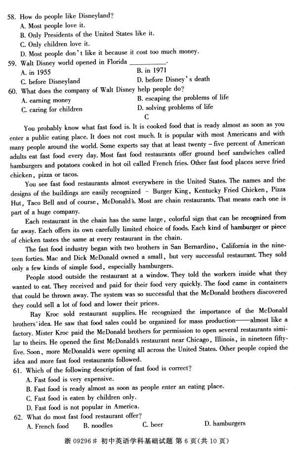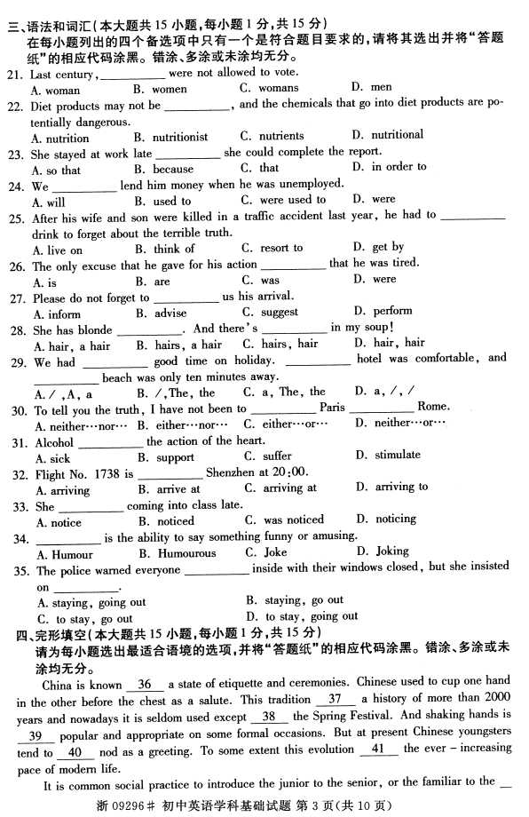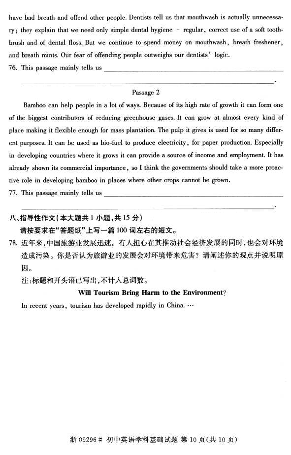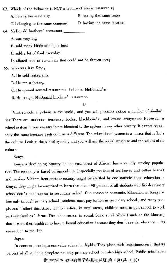 全国2016年4月09296《初中英语学科基础》试题.pdf
