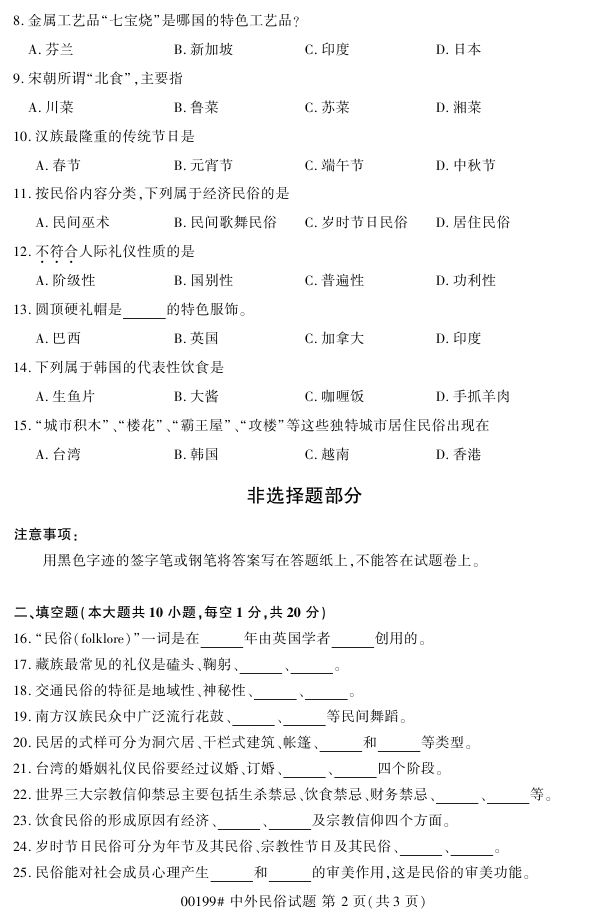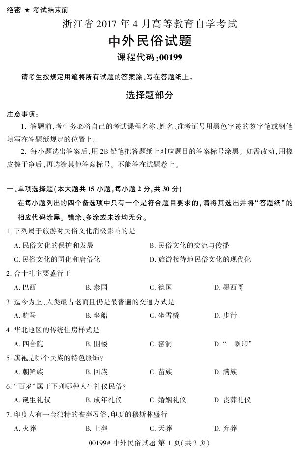 浙江省2017年4月自考00199《中外民俗》试题.pdf