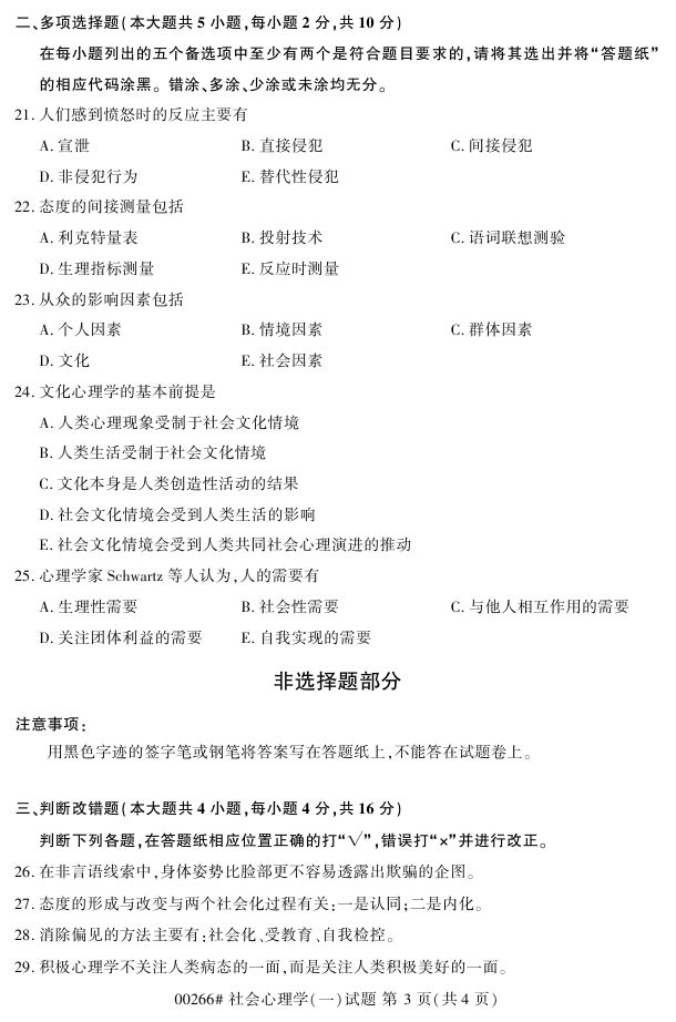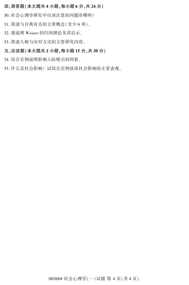 浙江省2017年4月自考00266《社会心理学(一)》试题