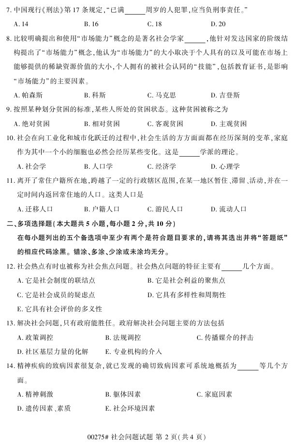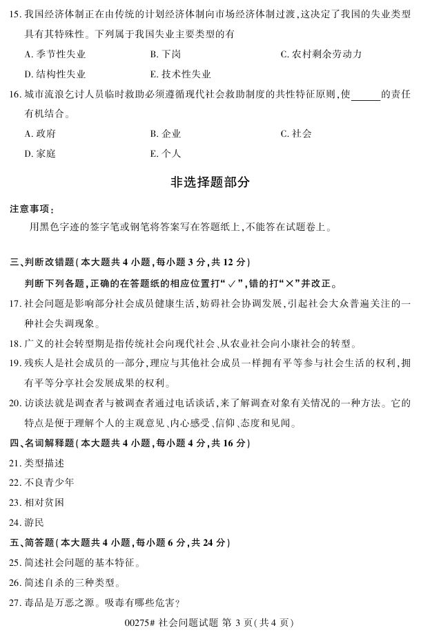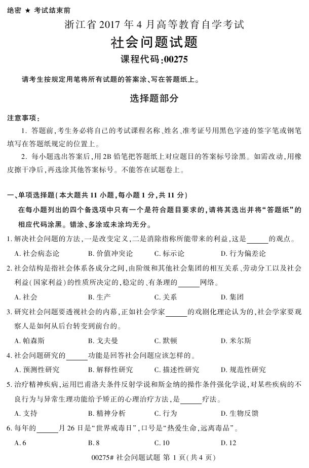 浙江省2017年4月自考00275《社会问题》试题.pdf