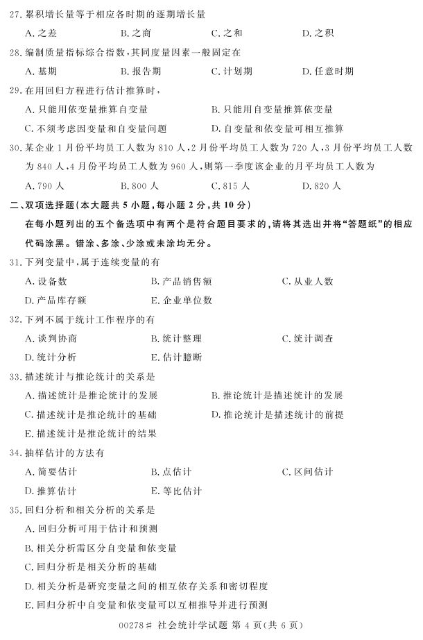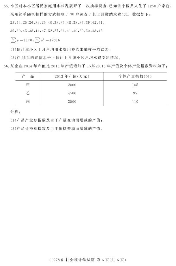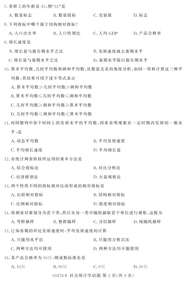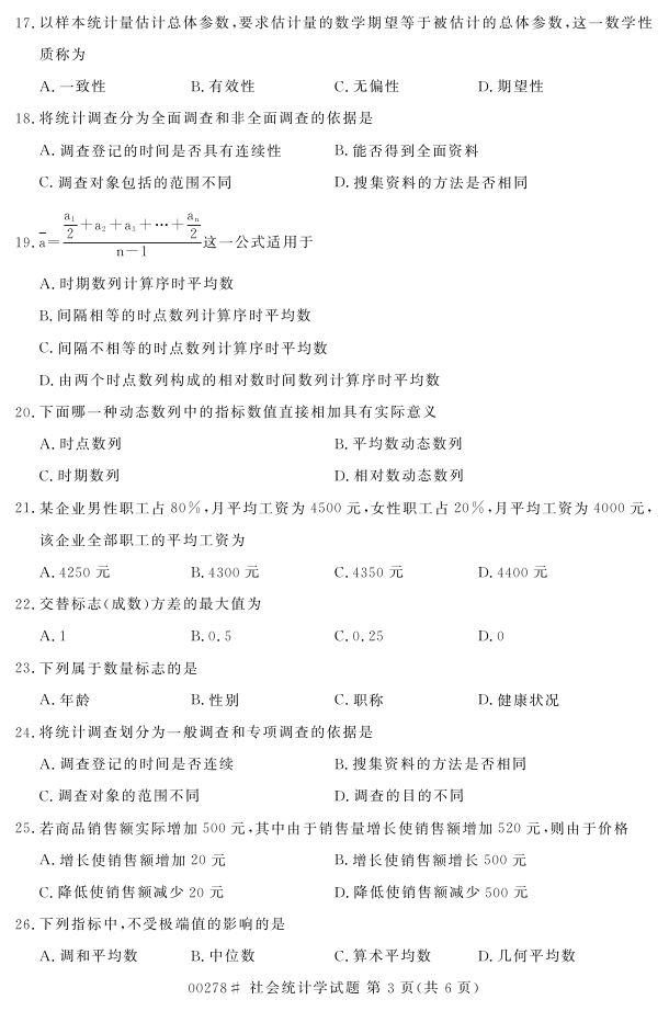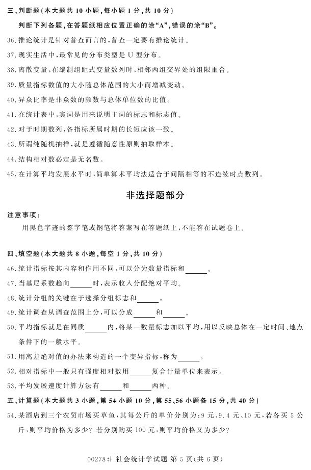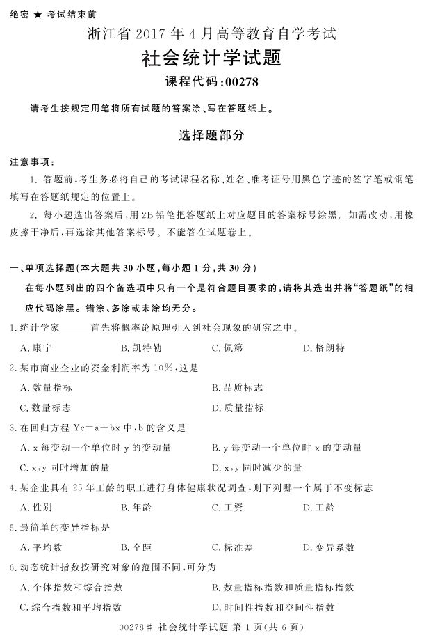 浙江省2017年4月自考00278《社会统计学》试题.pdf