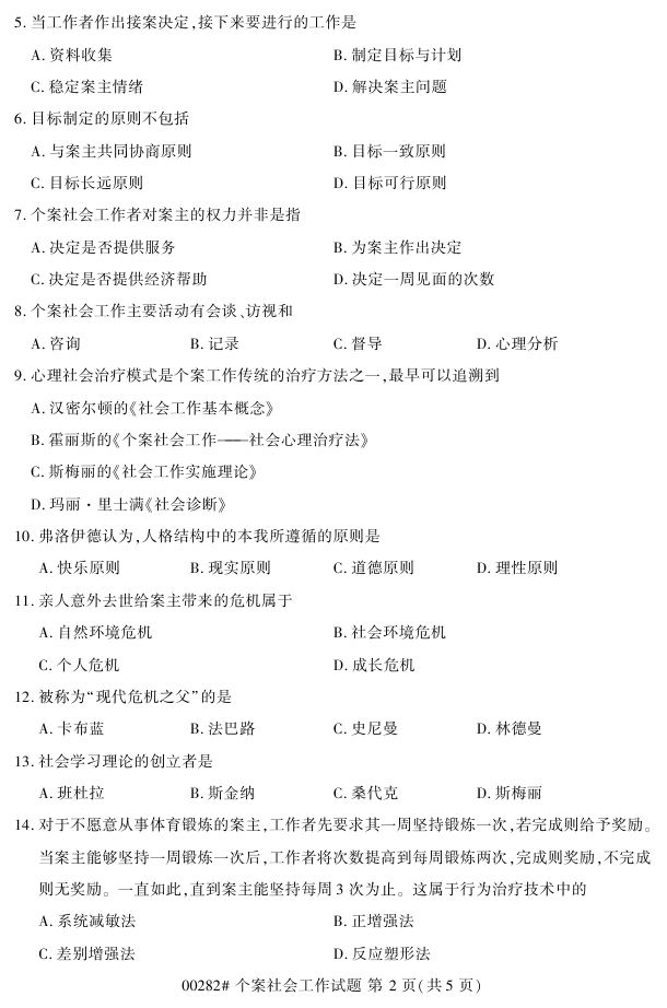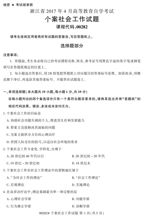 浙江省2017年4月自考00282《个案社会工作》试题.pdf