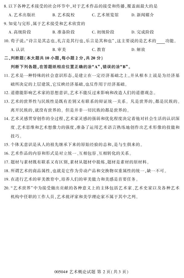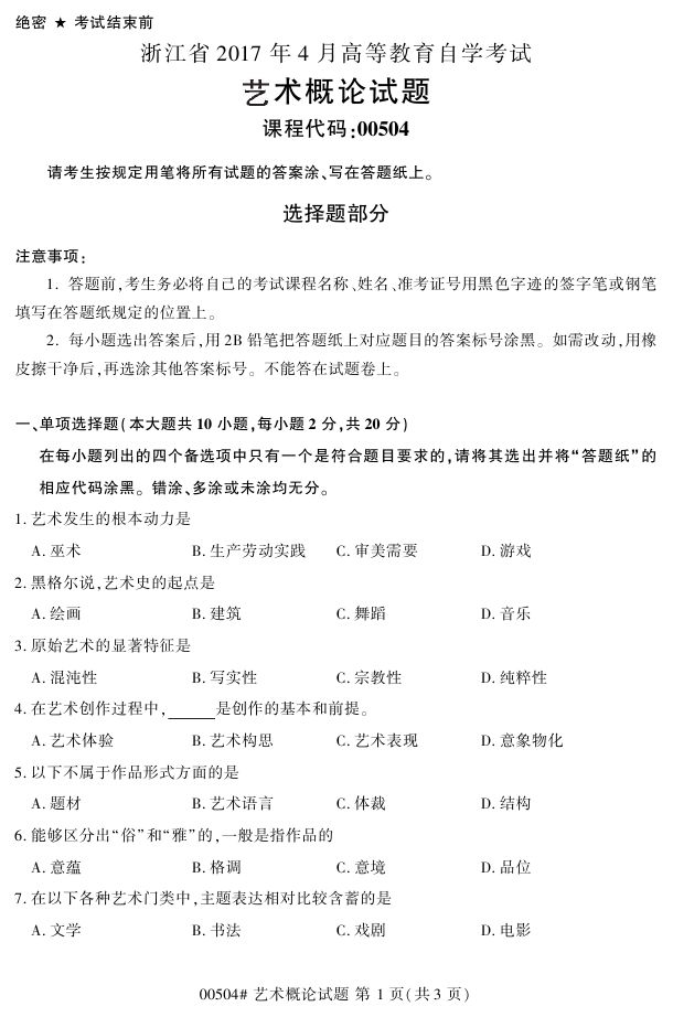 浙江省2017年4月自考00504《艺术概论》试题.pdf