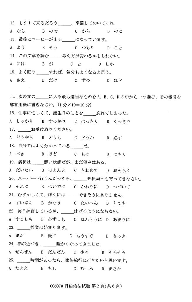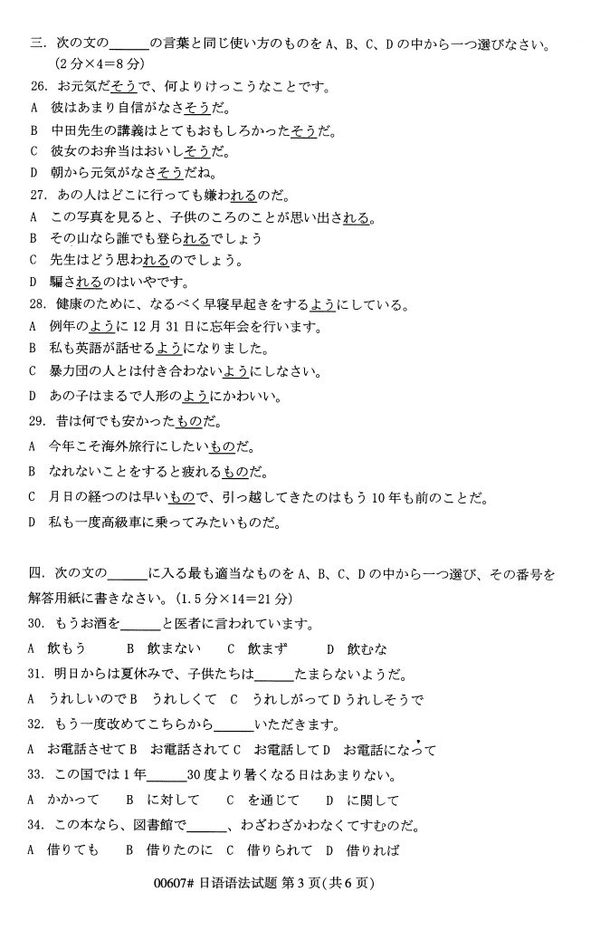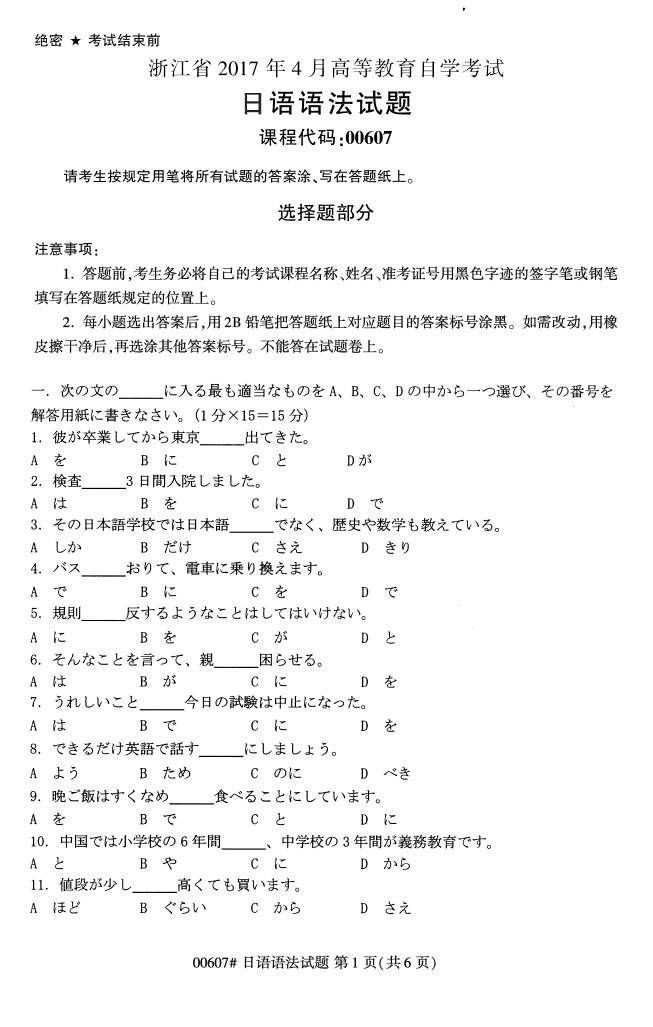 浙江省2017年4月自考00607《日语语法》试题.pdf