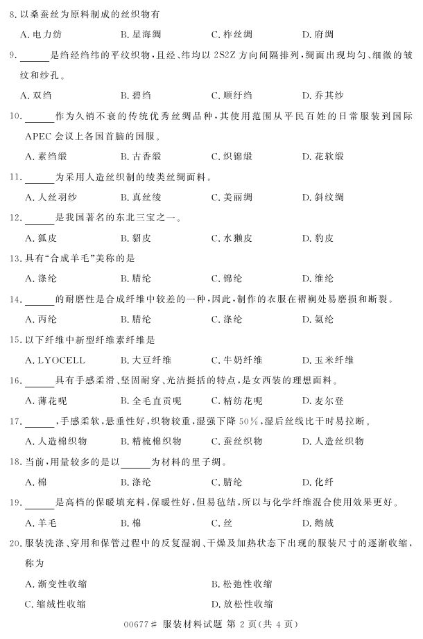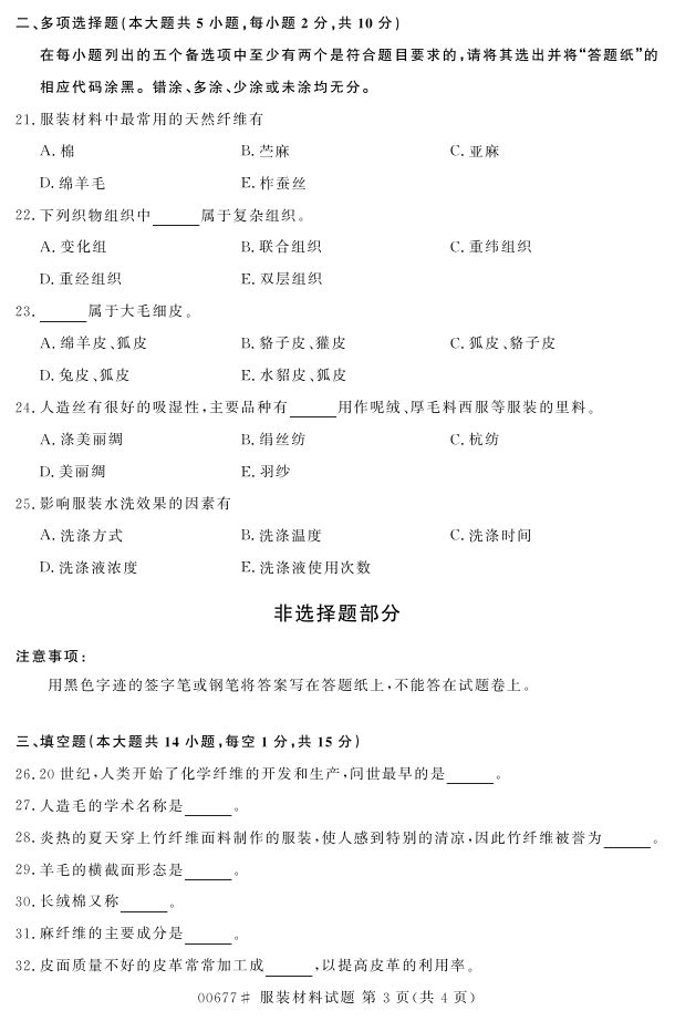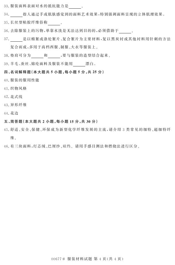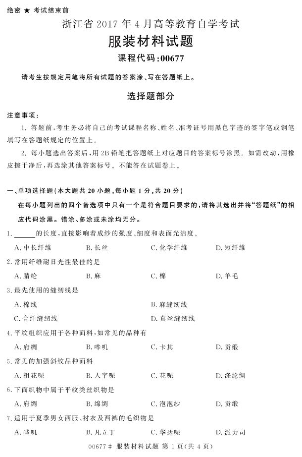 浙江省2017年4月自考00677《服装材料》试题.pdf
