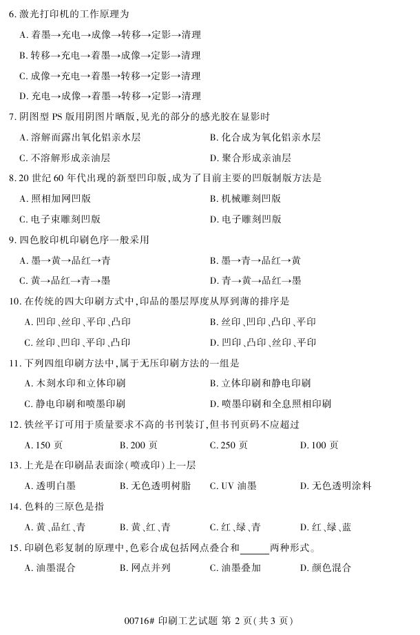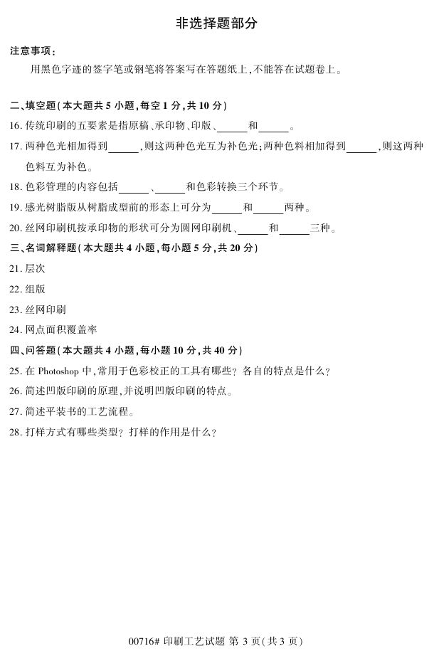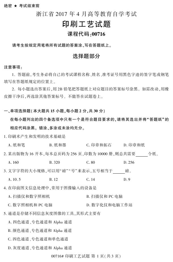 浙江省2017年4月自考00716《印刷工艺》试题.pdf