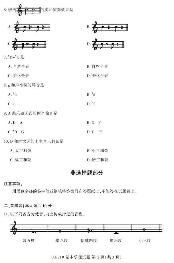 浙江省2017年4月自考00721《基本乐理》试题