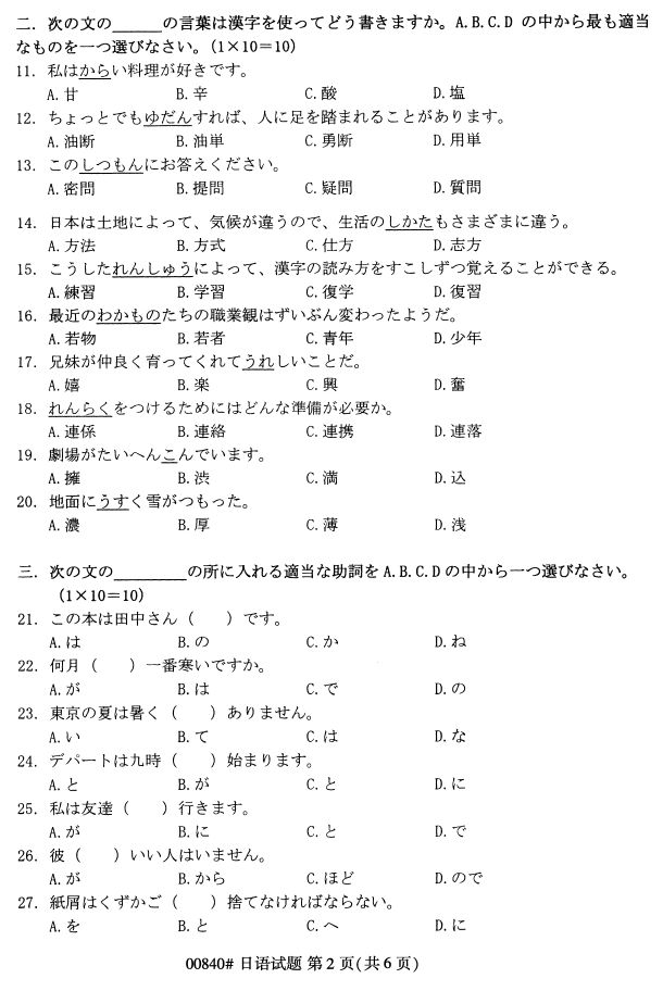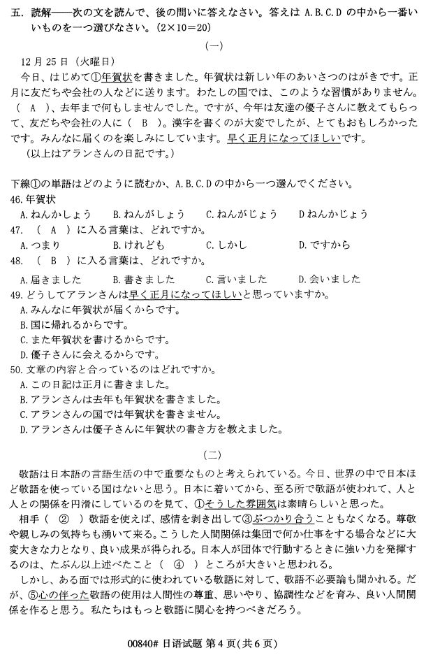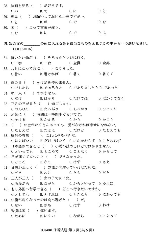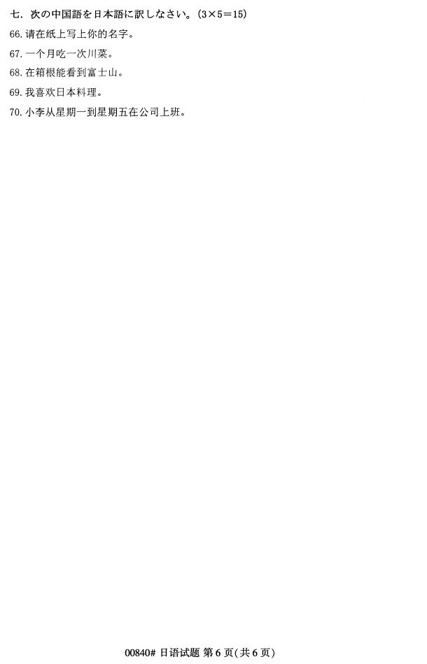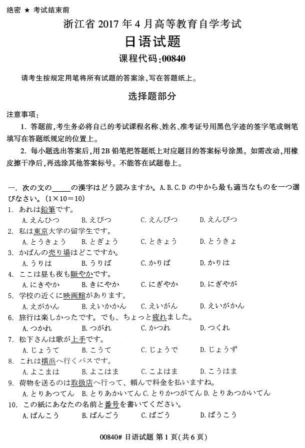 浙江省2017年4月自考00843《日语阅读(一)》试题