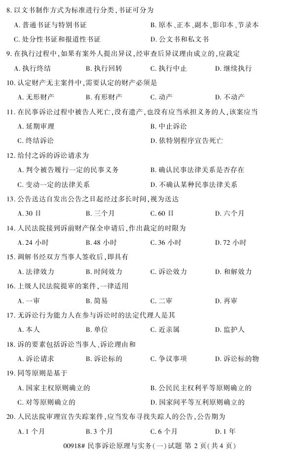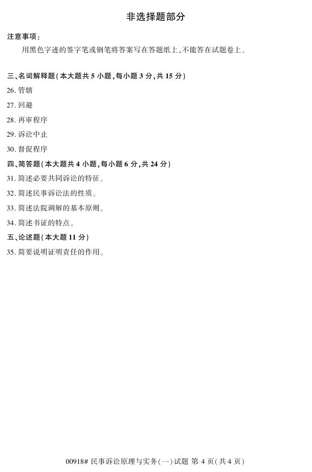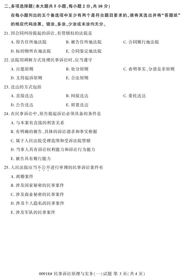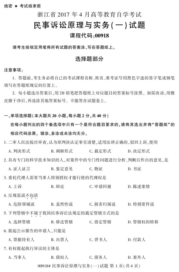 浙江省2017年4月自考00918《民事诉讼原理与实务(一)》试题.pdf