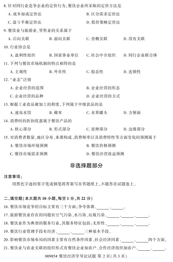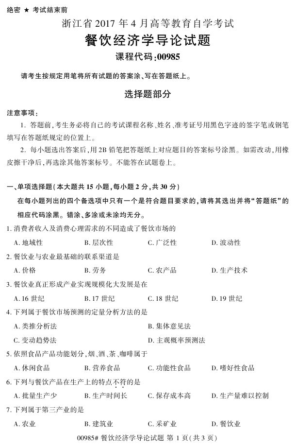 浙江省2017年4月自考00985《餐饮经济学导论》试题.pdf