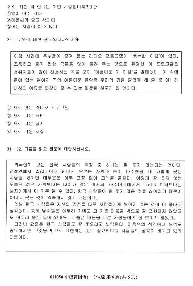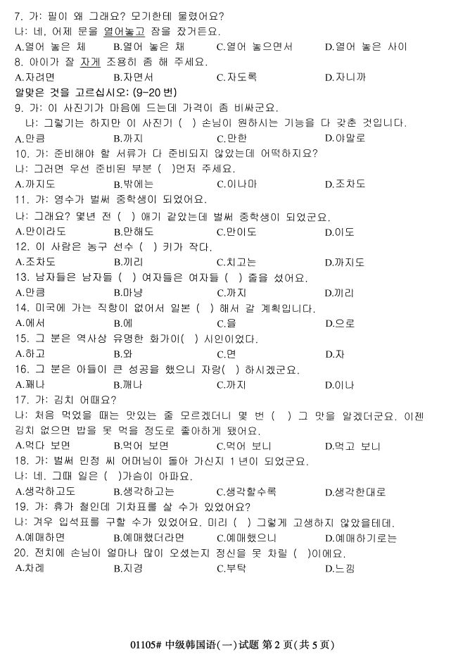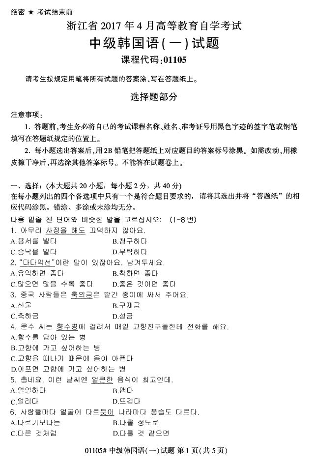 浙江省2017年4月自考01105《中级韩国语(一)》试题.pdf