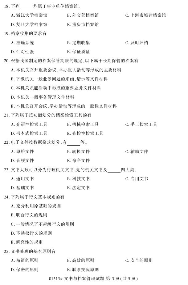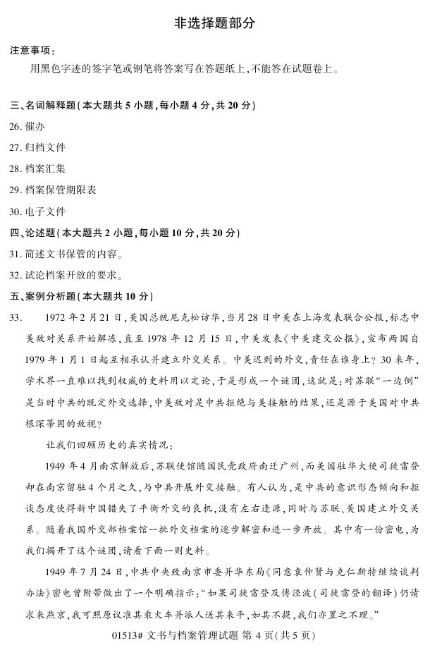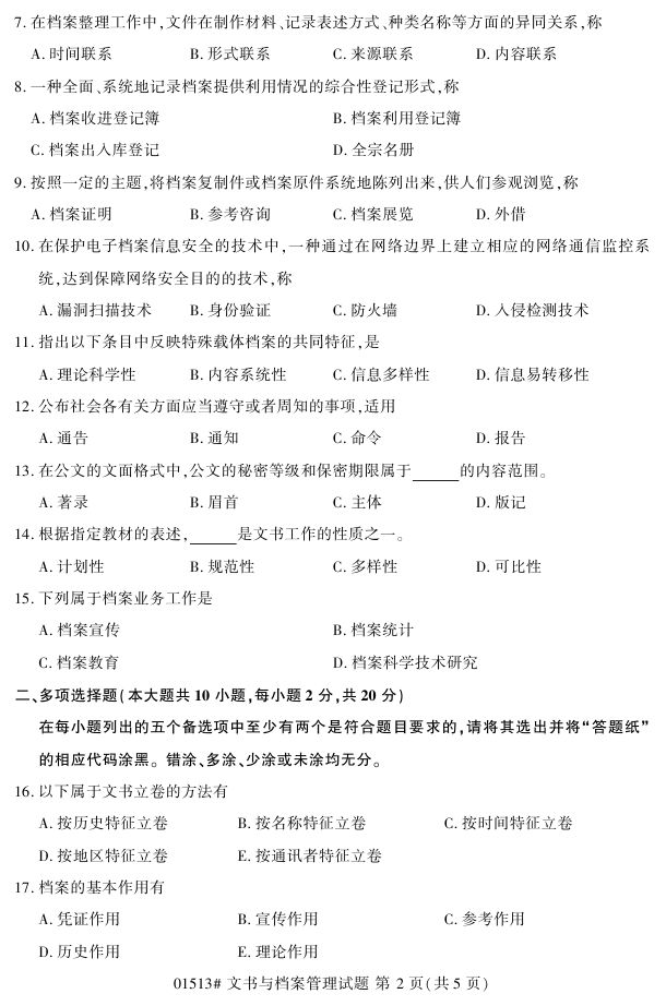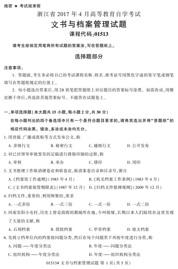 浙江省2017年4月自考01513《文书与档案管理》试题.pdf