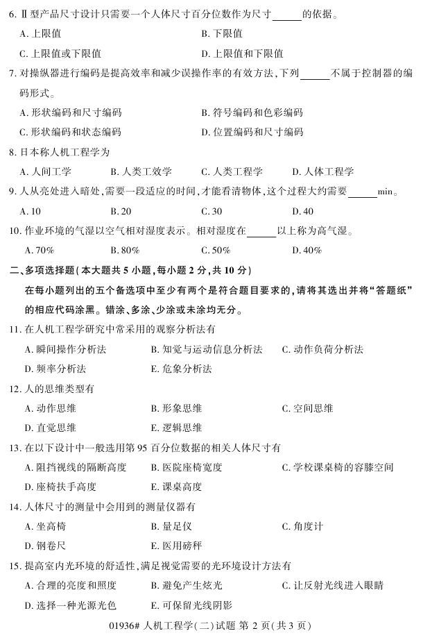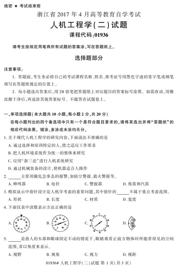 浙江省2017年4月自考01936《人机工程学(二)》试题.pdf