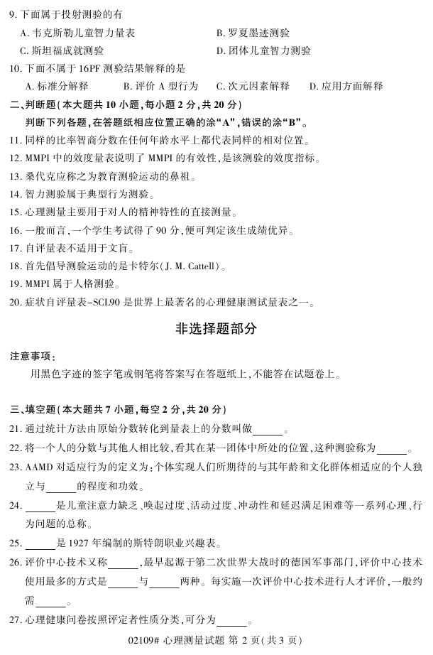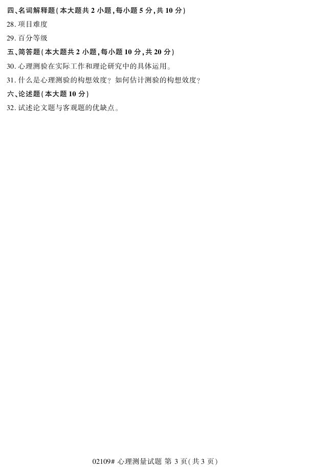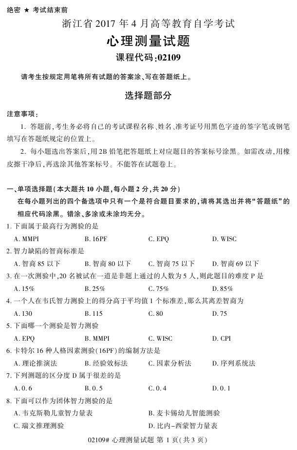 浙江省2017年4月自考02109《心理测量》试题.pdf