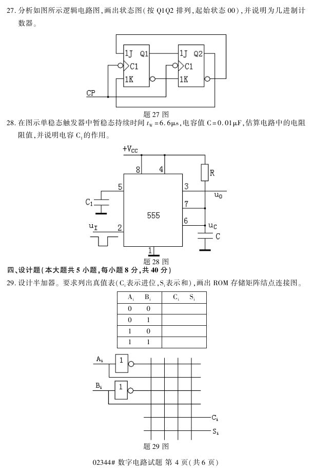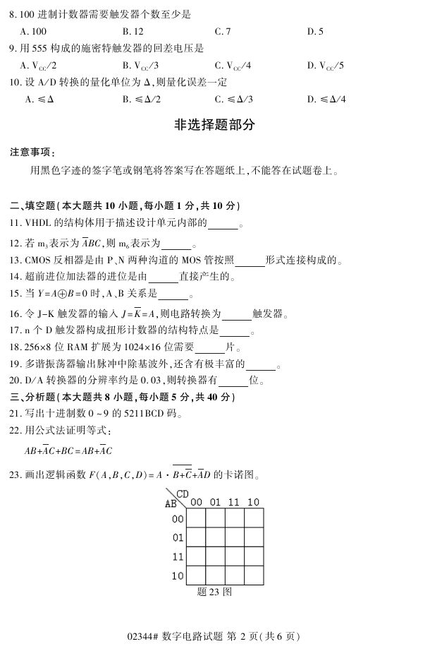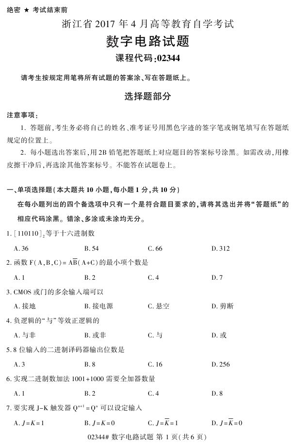 浙江省2017年4月自考02344《数字电路》试题.pdf